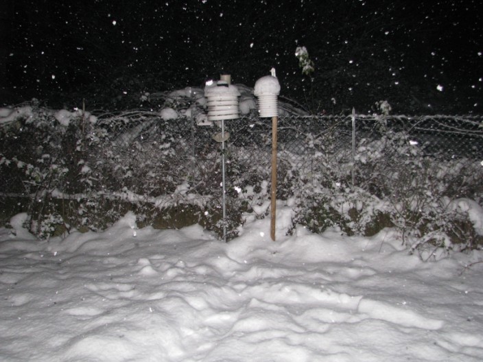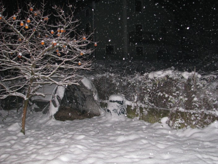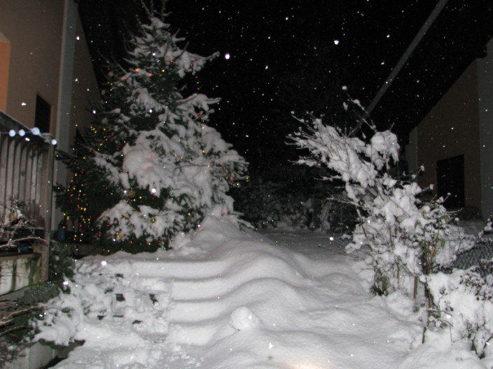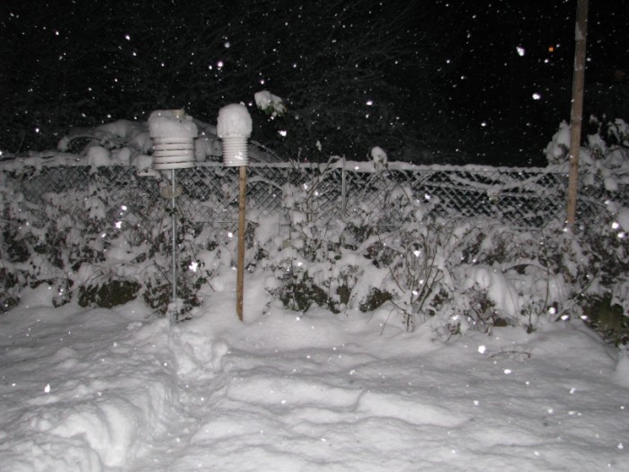 Ore 20.00 ancora debole nevicata in corso (durante il giorno era cessata a momenti), al suolo misuro 25 cm caduti tra ieri ed oggi e 38 cm totali, un inizio di inverno col botto.