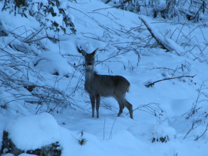 oggi giornata "perfetta", minima di -6,2°C a Levico, salito dalla Kaiserjaegerstrasse (Menador) per guardare l'alba su Levico innevata, in Vezzena (-13°C), incontro poi due caprioli per nulla intimoriti, poi salita a Fondi di Campo Manderiolo per scaricare i dati dal termometro in mezzo ad un paesaggio fantastico (per una volta ero il primo a passare...) e lì con mia sorpresa vedo che questa mattina (un'ora prima che arrivassi io, ha fatto -29,7°C).