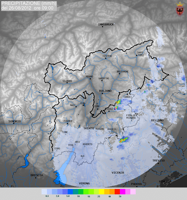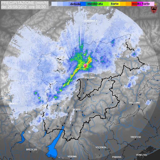 26/08/2012 - perturbazione decisamente inferiore alle attese, Levico saltata dalle precipitazioni nella notte
