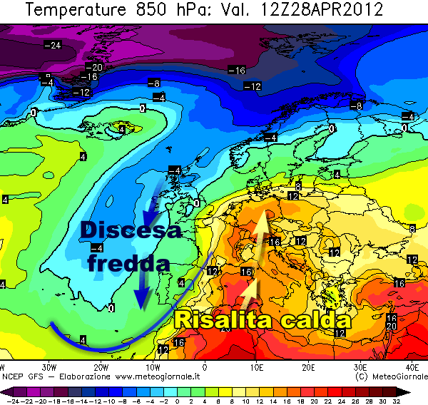 Qui sotto una mappa gfs rielaborata da www.meteogiornale.it che mostra l'origine dell'aria calda.