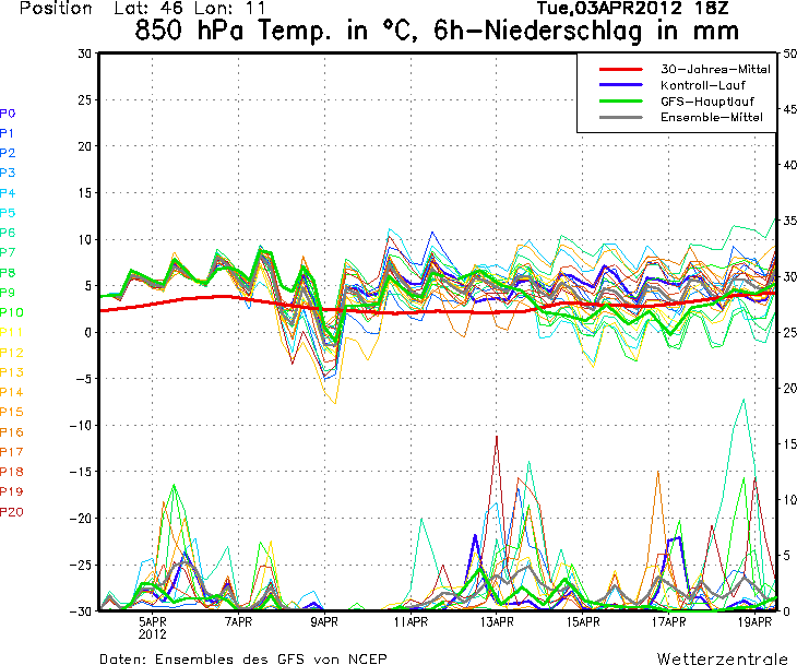 I modelli fisico matematici (vedi sotto) lasciano intravedere maggiori precipitazioni per il 5 e 6 aprile, un forte calo termico per il 9 aprile, specie in quota, e nuove precipitazioni dal 13 aprile, ma la situazione è in continua evoluzione ed i modelli cambiano davvero ad ogni uscita.
