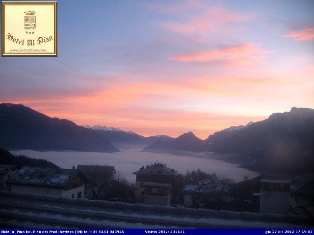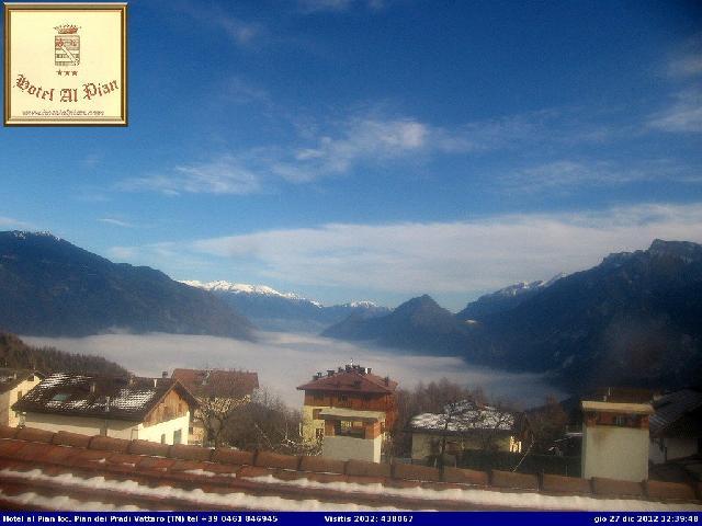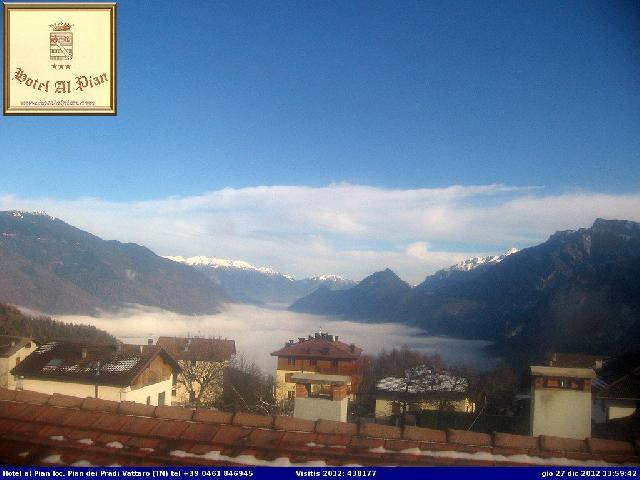 Qui sotto alcuni scatti dalla webcam dell'hotel Al Pian di Pian dei Pradi, che ritrae la nebbia sopra Levico Terme.
