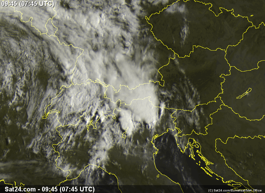 Questa mattina in poche ore sono caduti 42,6 mm di pioggia (1 mm per metro quadrato equivale ad un litro), la temperatura è precipitata rispetto a ieri (solo 16,5°C a mezzogiorno). Qui sotto la foto da satellite e del radar durante le precipitazioni. Schiarite previste già dal primo pomeriggio.