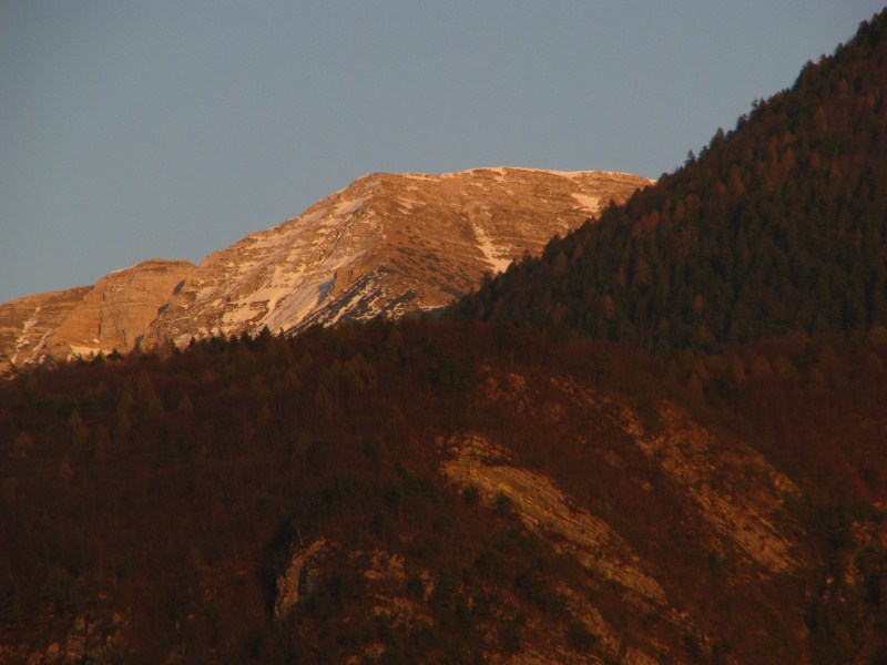 Qui sotto anche una foto di Cima Portule e Monte Trentin questa sera, situazione innevamento davvero da record (negativo).