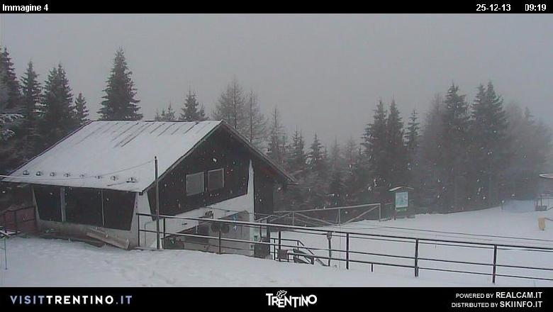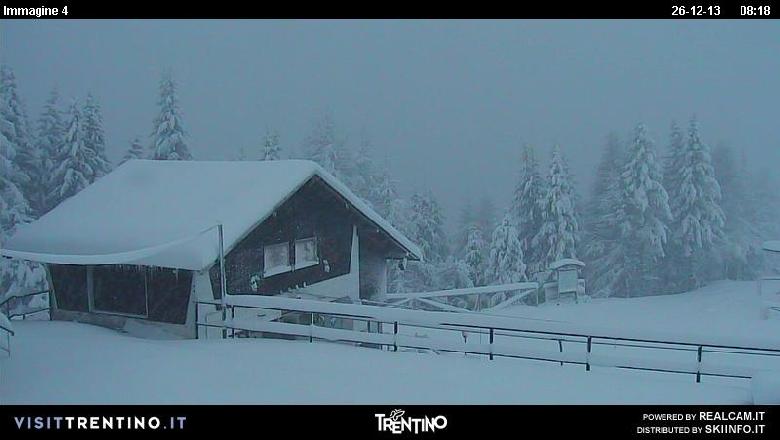 Alle ore 09.10 del 26 dicembre sono caduti 46 mm di pioggia dalla mezzanotte a cui si sommano i 23,5 mm caduti il 25 dicembre. La temperatura che è rimasta elevata per tutta la giornata del 25 dicembre, ha iniziato a calare nel corso della notte, passando dai +6,8°C della mezzanotte ai +3,3°C delle ore 09.10. La quota neve è finalmente in calo, come avevo scritto il 22 dicembre non si esclude di vedere qualche fiocco anche a Levico Terme a fine evento. Qui sotto due immagini che ritraggono la Panarotta ieri ad inizio precipitazioni e questa mattina ad ore 08.00, l'accumulo è consistente. Nell'altra immagine il centro di Madonna di Campiglio questa mattina.