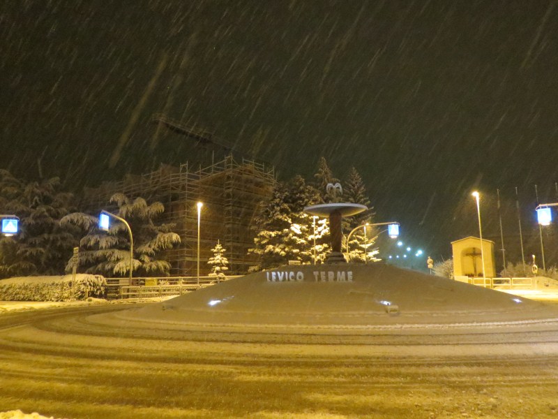 In ritardo ed inferiore alle aspettative, alle ore 07.30 è iniziato a nevicare (nevischio) a Levico Terme, con temperatura a +0,1°C ma in calo.