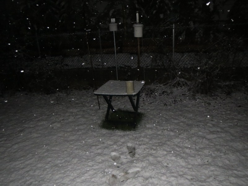La pioggia si è trasformata in neve dopo le ore 22.00 di ieri, alle ore 00.00 nevica tra il moderato ed il forte con un accumulo di circa 2 cm (vedi foto), neve bagnata (temperatura +0,3°C).