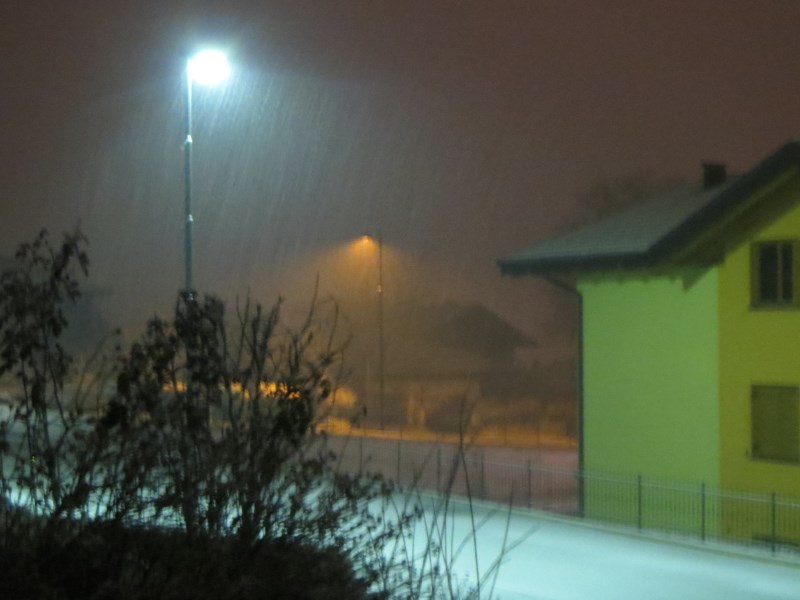 A Levico è iniziato a piovere poco dopo le ore 18.00. Dopo una fase iniziale di neve mista pioggia, dalle ore 22.00 nevica e ha iniziato a imbiancare.