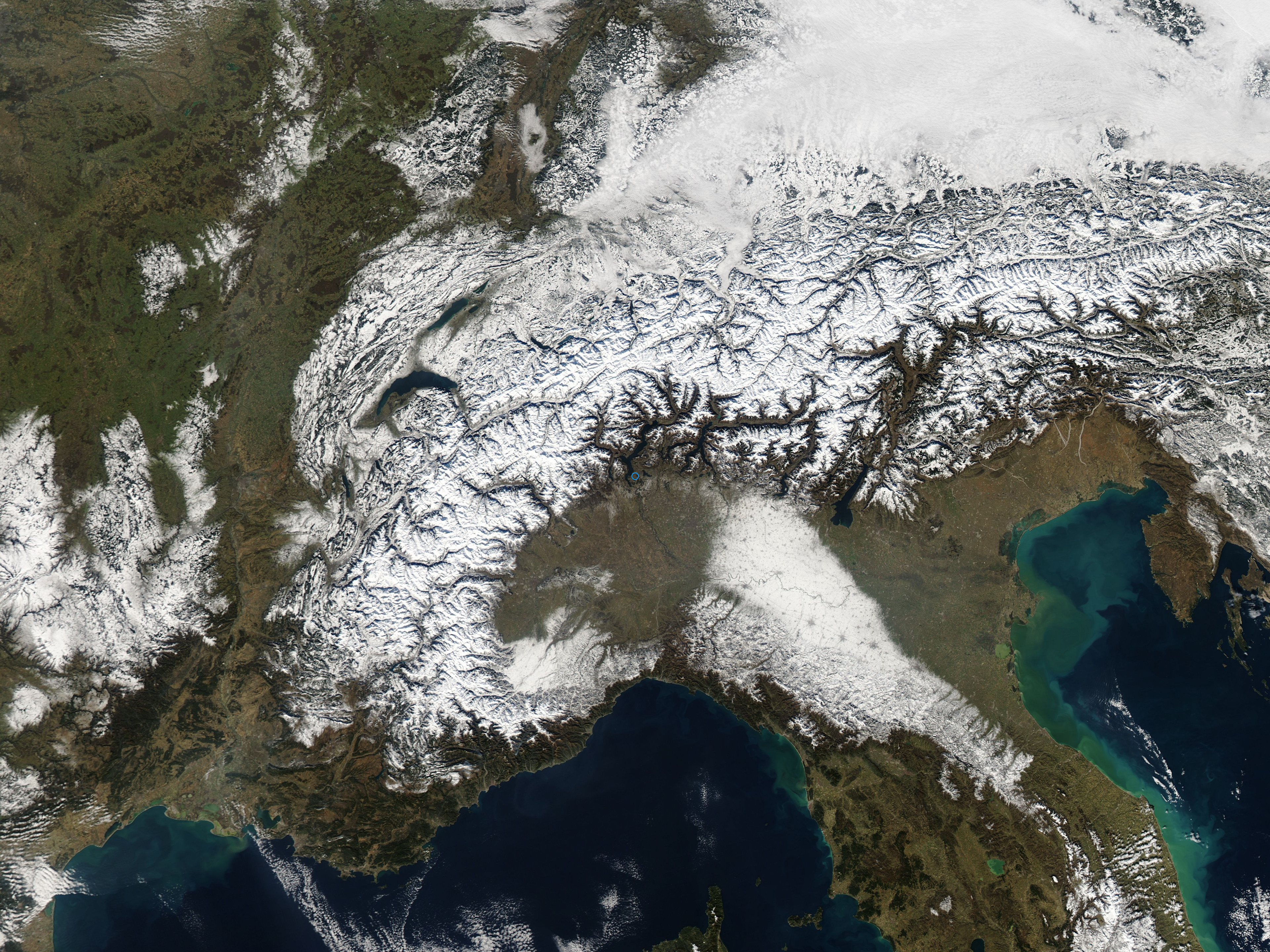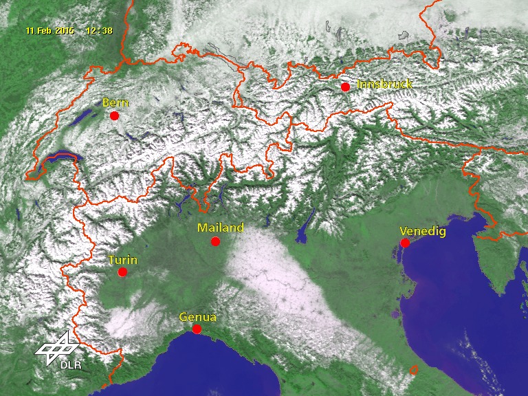 Bellissime in questi giorni le foto satellitari da cui si vede benissimo la neve sulle Alpi, sull'Emilia ed il basso Piemonte, Val d'Adige "verde" e Valsugana imbiancata (Vedi allegati)