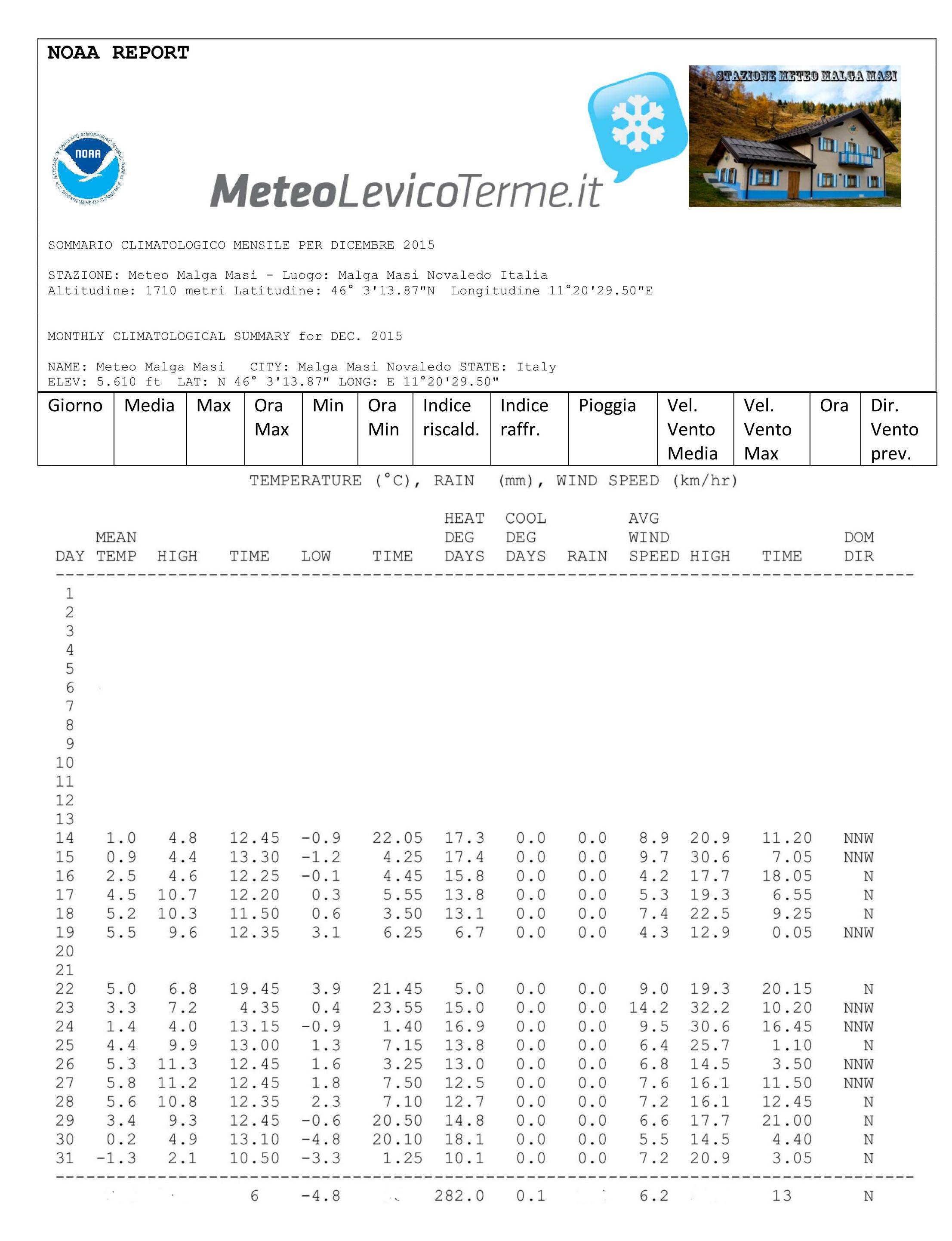 02/01/2016 - Report Noaa dicembre 2015 Malga Masi