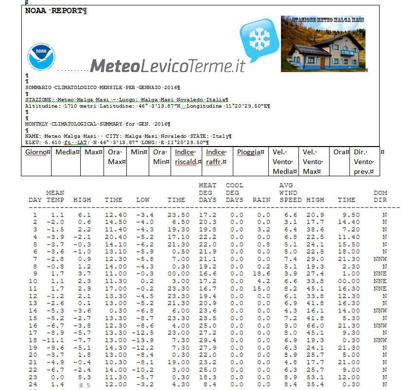 A Malga Masi a quota 1710 metri, la temperatura massima nel giro di 6 giorni è aumentata di 16°C, passando da -7,7°C a +8,5°C (vedi report di gennaio allegato).