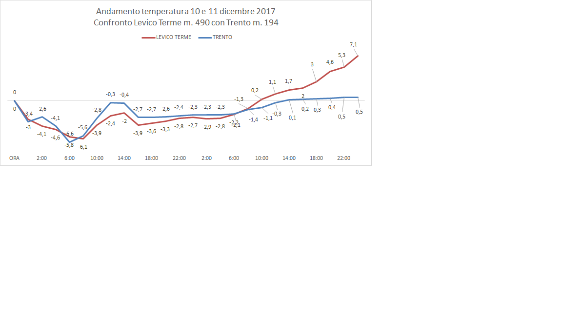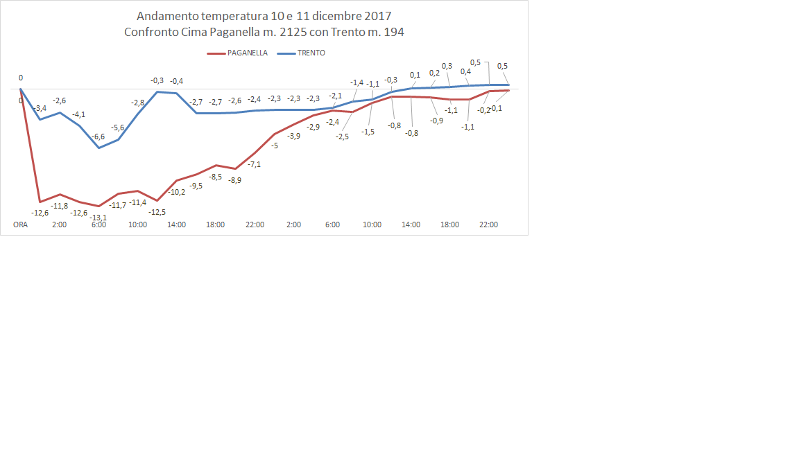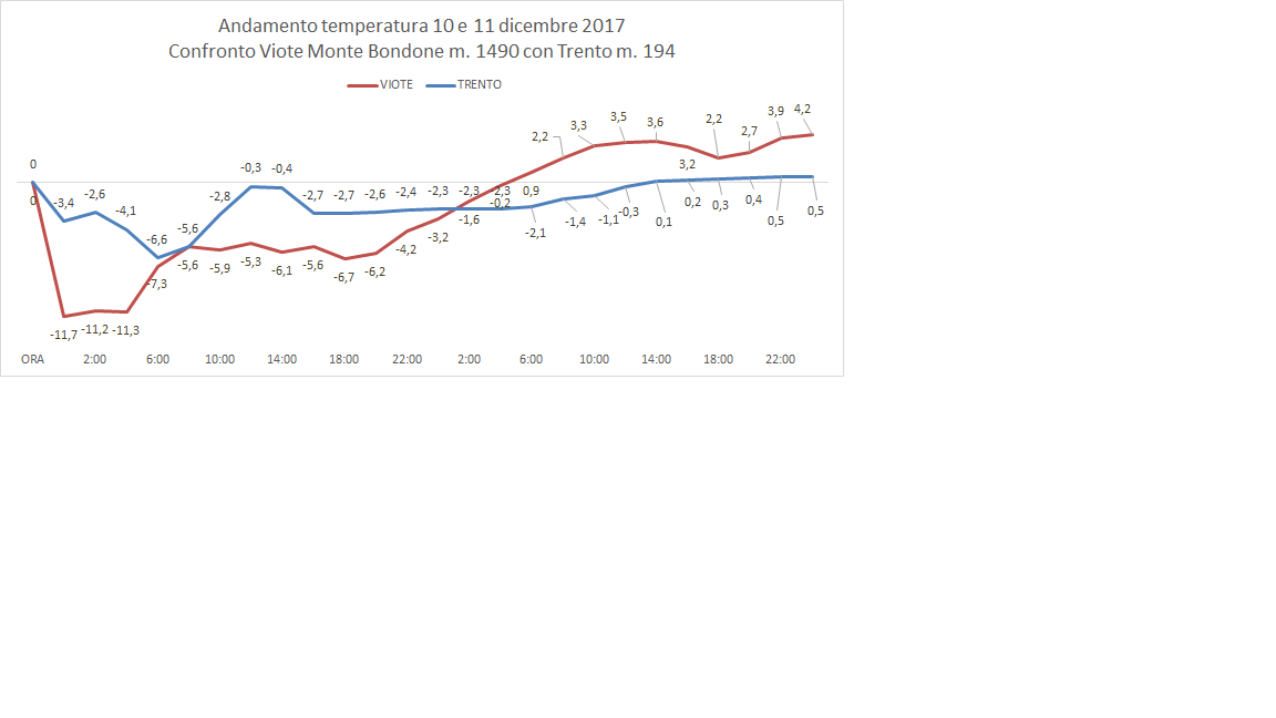 13/12/2017 - Analisi temperature peggioramento 10/11 dicembre 2017 gelicidio e scioglimento neve
