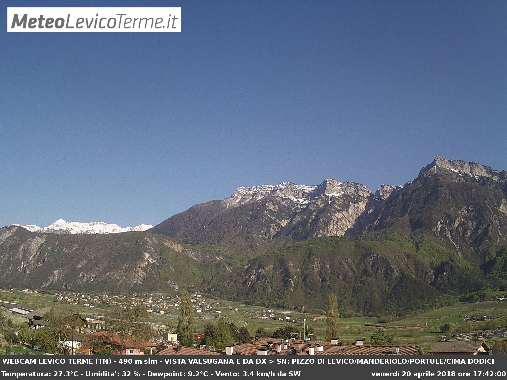 A Levico Terme la massima ha toccato i +27,2°C il 18/04 i +25,6°C il 19/04 ed i +28,5°C oggi 20/04.