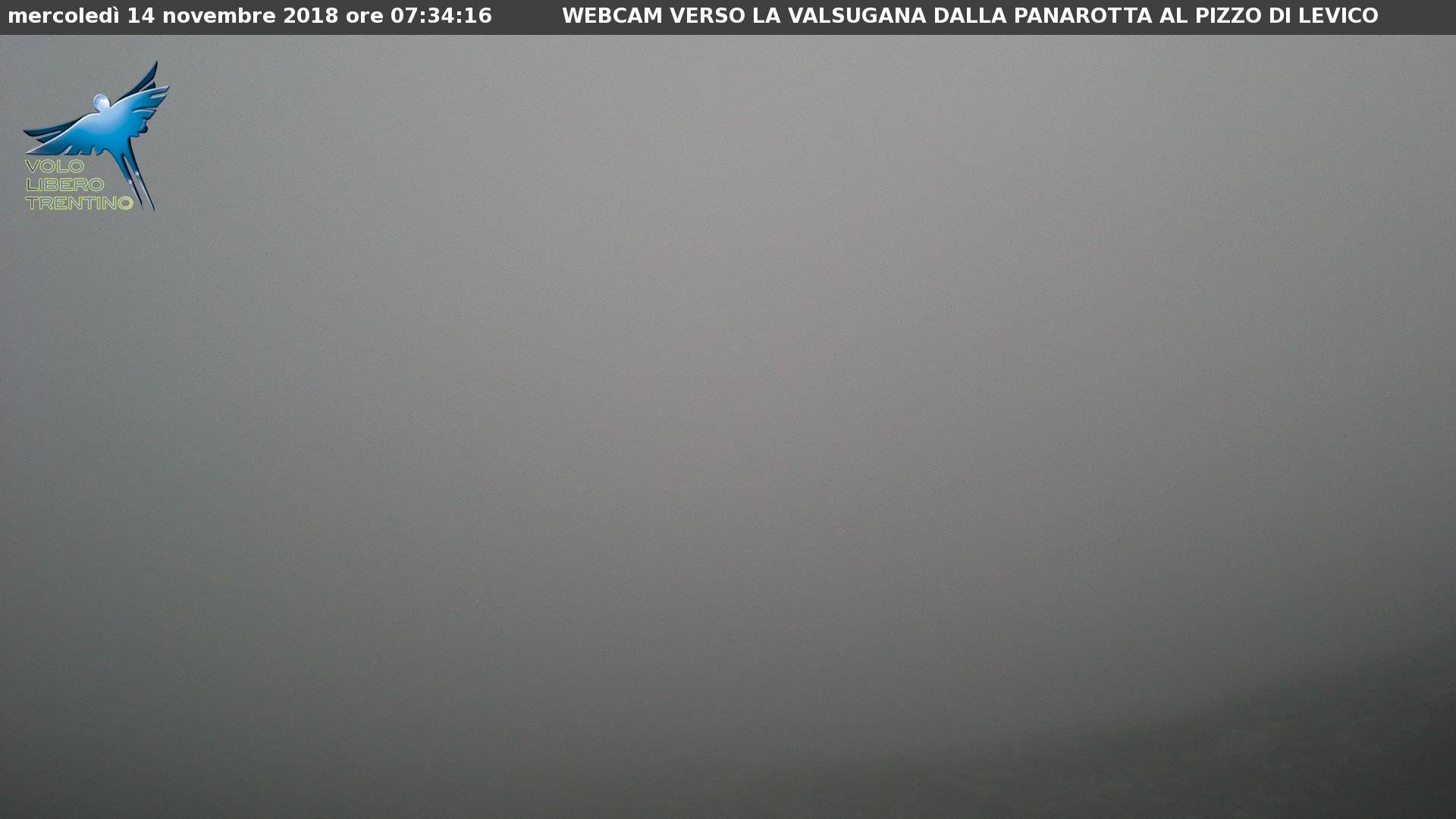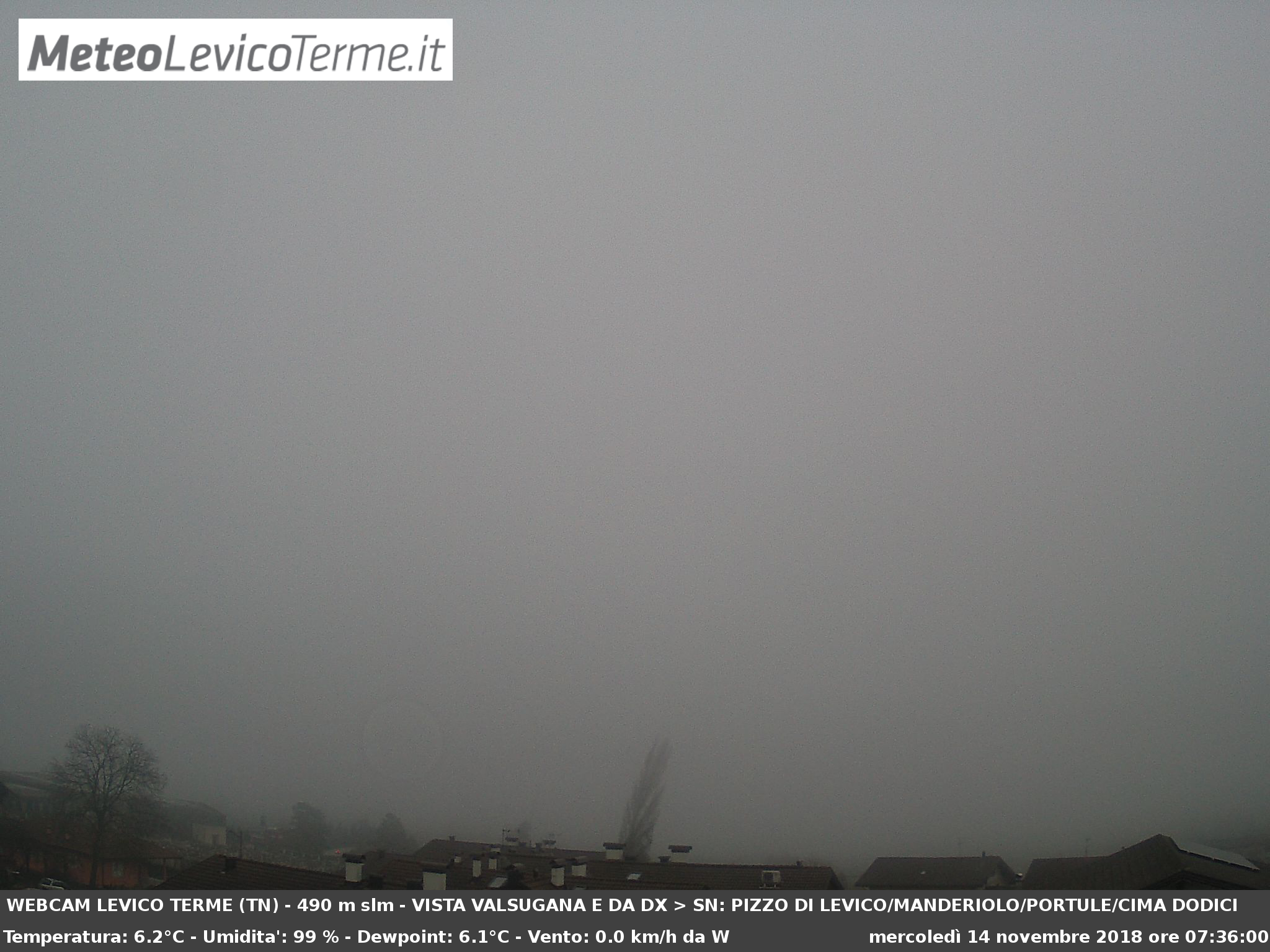 Sequenza di fotografie dell'alba e delle ore 12.45 che ritraggono Levico immersa nella nebbia.