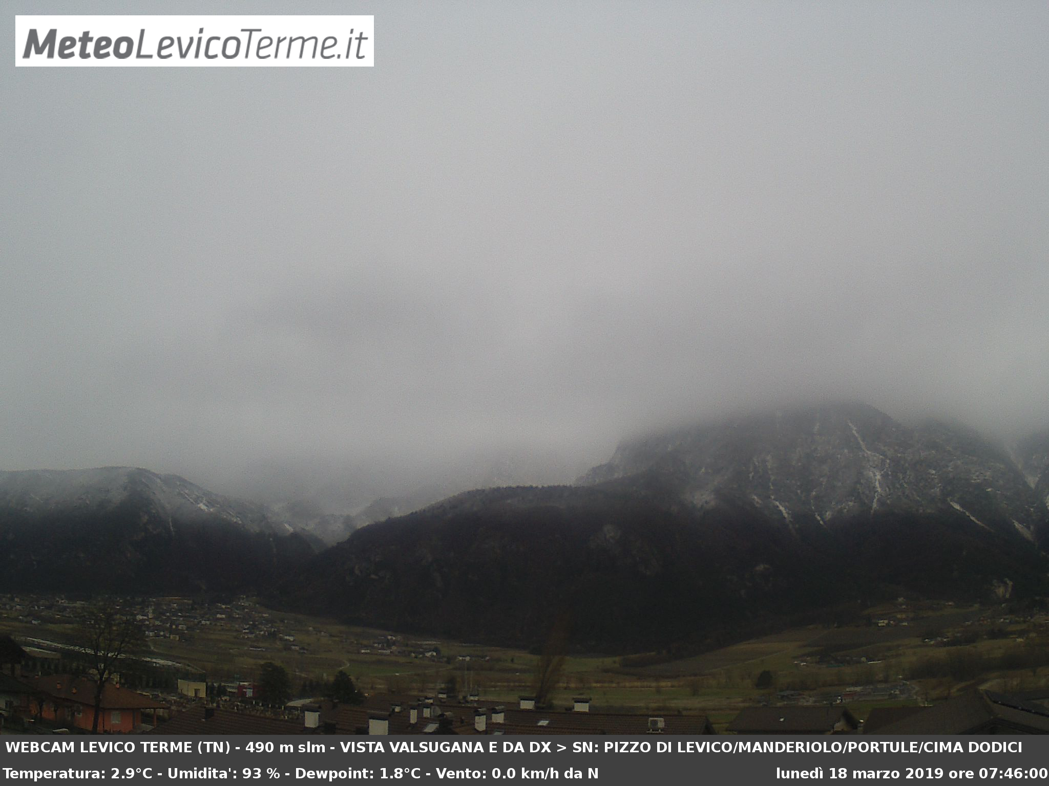 18/03/2019 - Fronte freddo molto veloce porta pioggia a Levico e neve sopra gli 800 metri