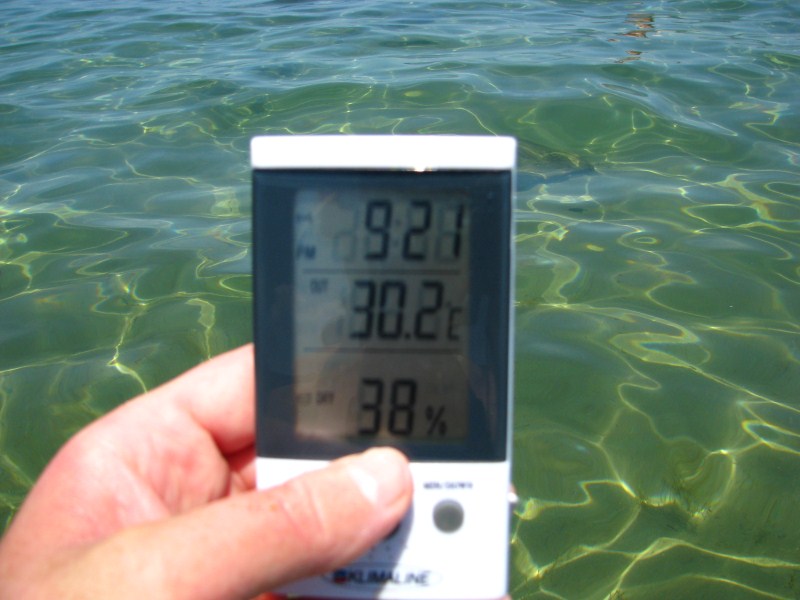 La temperatura percepita fortunatamente non è molto più elevata visto il basso tasso di umidità, certo è che essendo l’acqua del mare calda non ci si rinfresca molto.