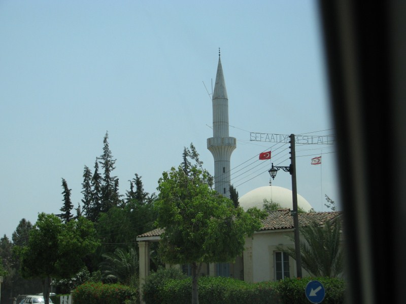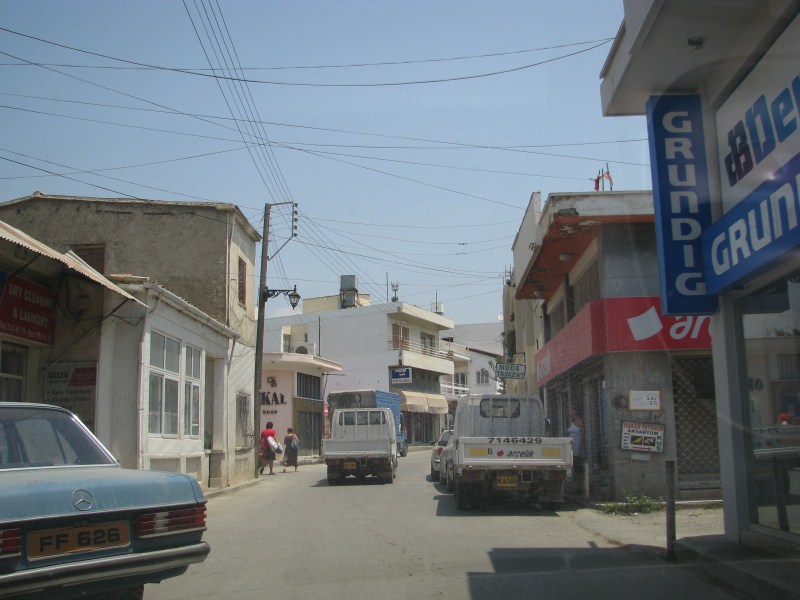 La mattina dopo colazione partiamo alla volta della parte ovest dell'isola, percorriamo 100 km per arrivare al confine con la Cipro "greca", lungo la strada i soliti paesini che sembrano usciti da un bombardamento, case fatiscenti, mucchio di immondizia ovunque, qualche moschea, lungo la strada trovare 4 metri senza rifiuti (in particolare bottiglie di plastica) è quasi impossibile.