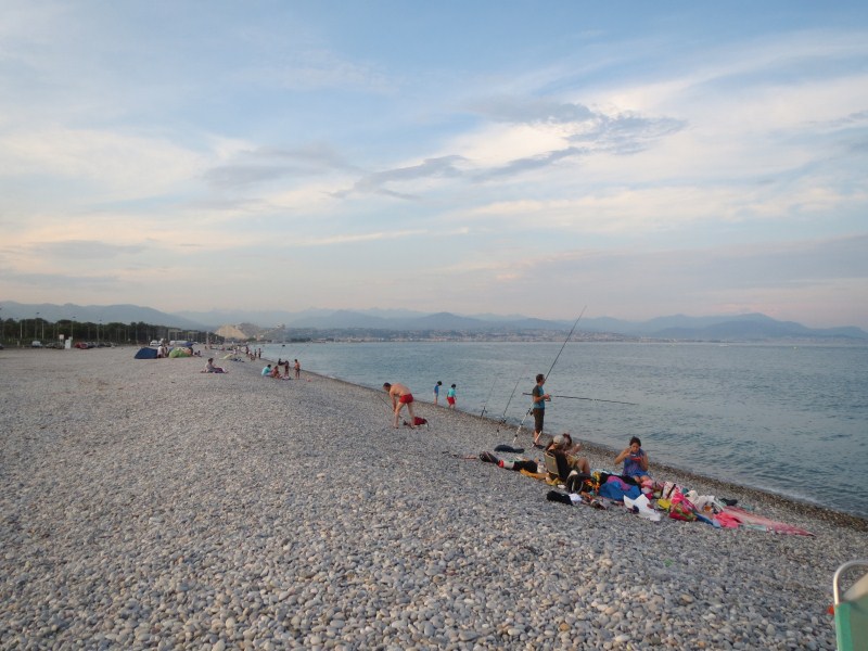 Consueta colazione alla viennoiserie di Mandelieu La Napoule, e poi partenza per la spiaggia tra Antibes e Cagnes sur Mer. Il pomeriggio ci sarà un po' più di visibilità e si potranno vedere le montagne innevate del Mercantour alle spalle di Nizza al confine con l'Italia.