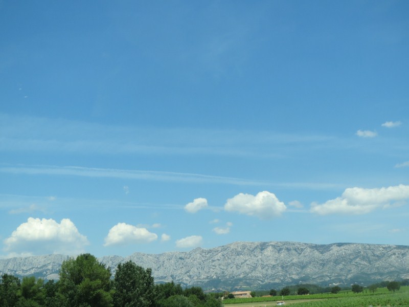 Imbocchiamo la A8 e facciamo una bella tirata fino ad Avignone (passiamo vicino alle montagne Sainte Victorie ritratte molte volte da Cézanne), dove ci fermiamo in un mega Auchan (59 casse, una in più di quello di Timisoara…) ad acquistare, vino, zuppa di pesce e pane e formaggio (le adorabile tome San Felicien) per il pranzo.