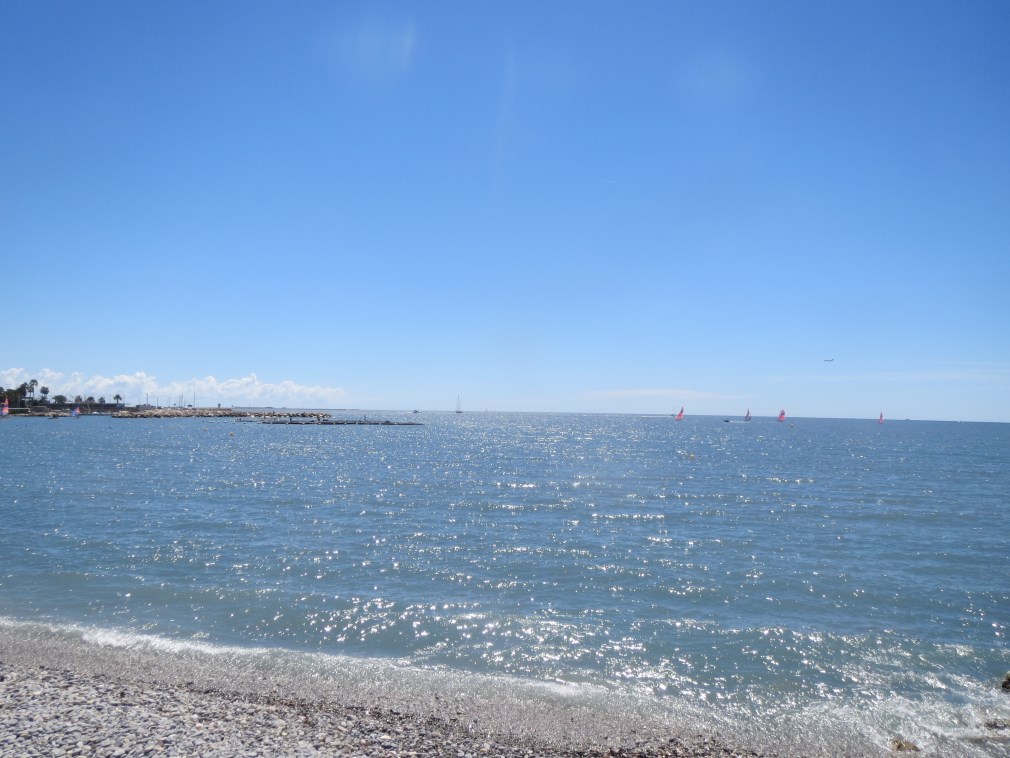 Rientriamo alla Baia degli Angeli a Biot dove tira un vento forte (50 km orari le raffiche ma vento sui 40 km/h), faccio il bagno in mezzo ai cavalloni, fantastico.