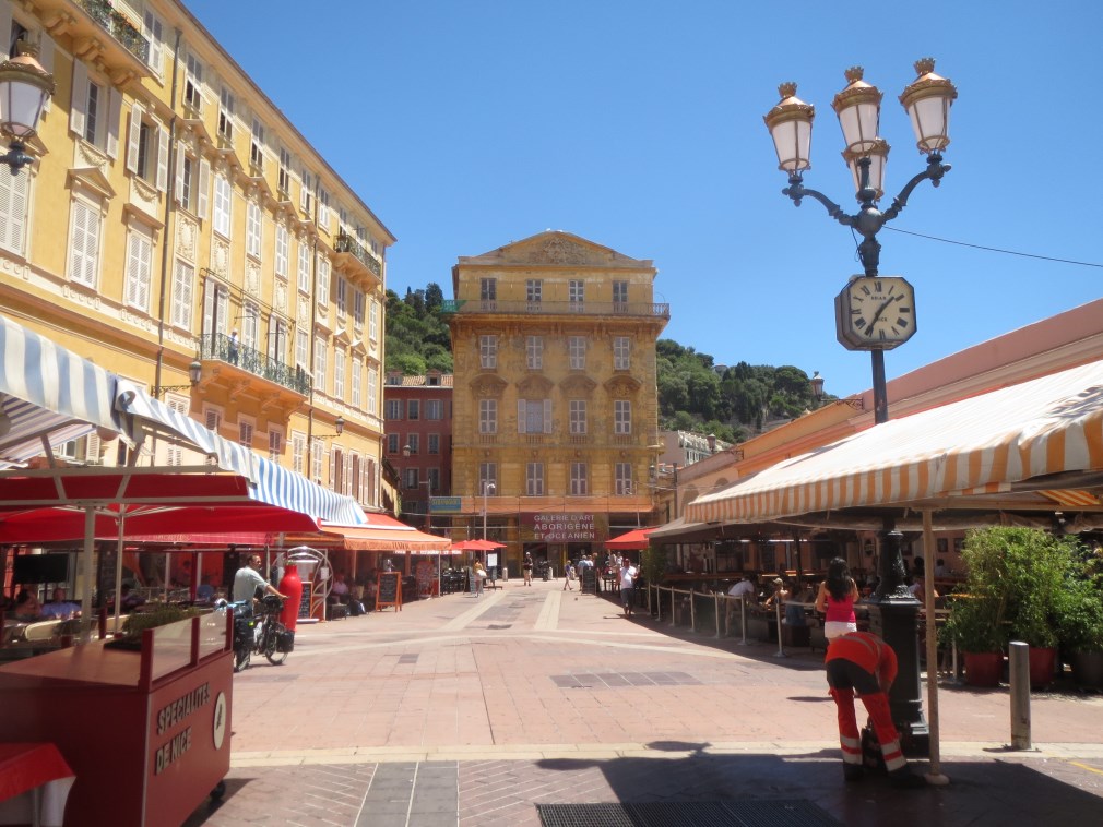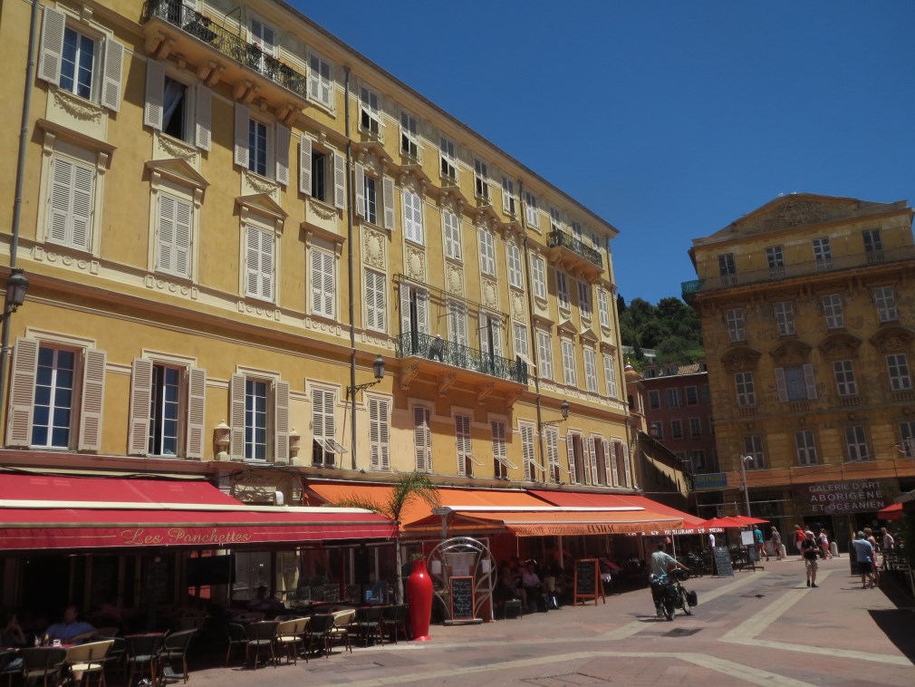 A cena torniamo a Nice dove ceniamo a base di insalata nizzarda, trancio di salmone ai ferri con la ratatouille e creme brulé in un ristorante nella piazza del marché au fleurs, al Cyliano, ottimo rapporto qualità prezzo, consigliato.