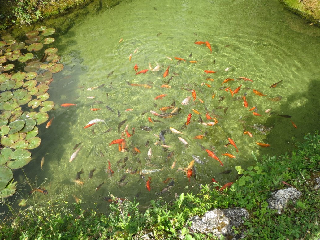 Dopo colazione, faccio qualche foto al castello visto il bel sole, nel laghetto vicino al castello, alimentato da una sorgente, ci sono centinaia di pesci rossi, qualche rana molto schiva, in una vasca scavata nel tufo vedo anche un serpente d'acqua.