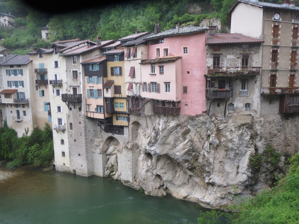 Dopo l'ultima colazione al "Castello" (questa volta non da solo ma con una simpatica coppia di Lione con la loro figlia), parto alla volta di Pont en Royans per scattare qualche foto, come da tradizione, alle Maisons Suspendues (case sospese) sopra la Bourne. Purtroppo la giornata non è delle migliori e piove molto forte. Il bancomat del Credit Agricole di Pont mi ingoia la tessera bancomat.