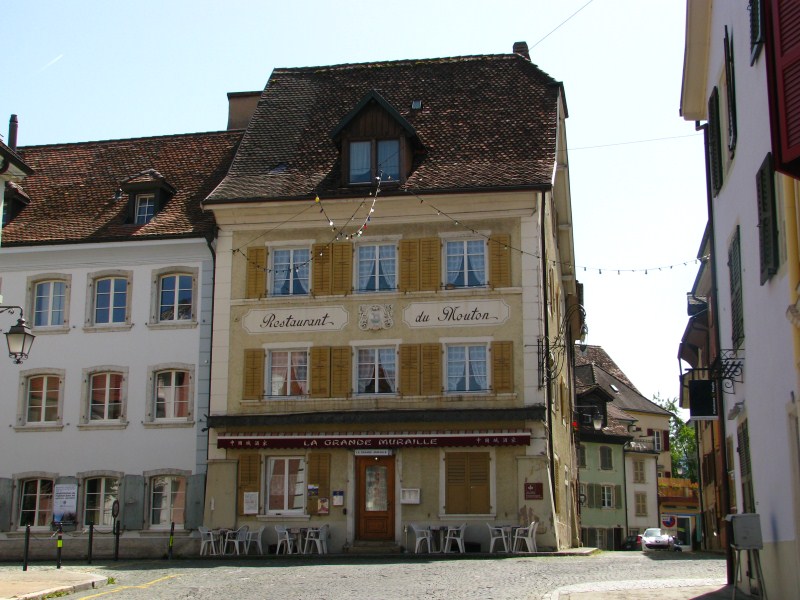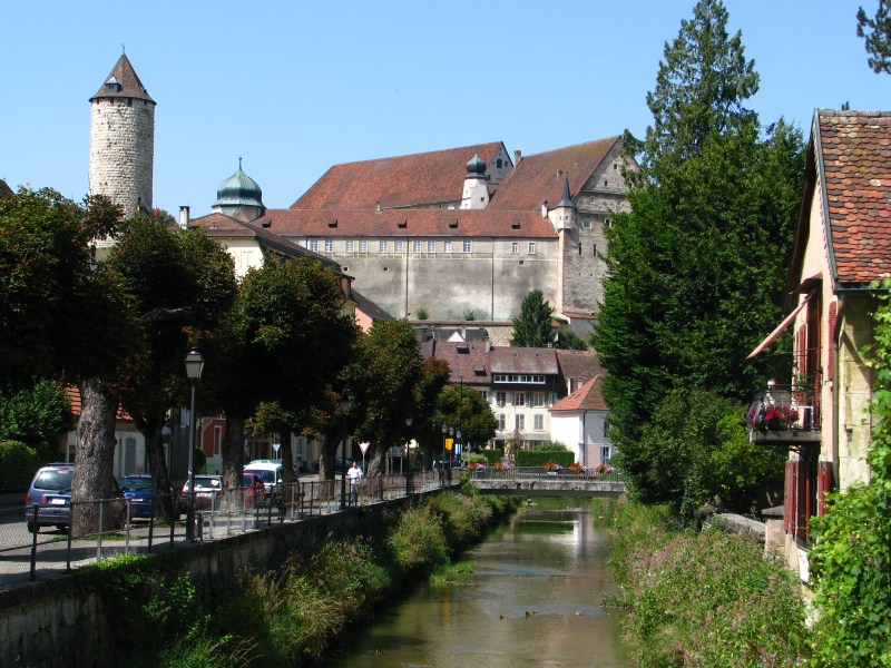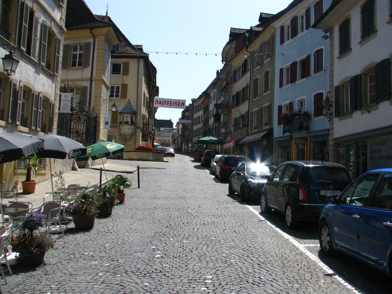 Al primo paese mi fermo a prelevare 50 Franchi Svizzeri (42 Euro con le commissioni) per il pranzo, ma purtroppo anche volendo non riuscirò a spenderli. Arriviamo a Porrentruy e sembra che sia caduta una bomba atomica (è vero che i 36°C non aiutano), ad ogni modo è tutto chiuso, neanche un ristorante, troviamo un bar dove però non fanno panini e ci limitiamo a bere una birra alla spina, visitiamo rapidamente il centro con un buco nello stomaco (gli unici due negozi aperti sono due edicole….). Nel bar leggo un quotidiano svizzero, tra le varie notizie "Renato Gattuso fa la fortuna del Sion, grazie ai suoi valori culturali ed umani boom di abbonamenti" - "Lo sperma svizzero va a ruba" articolo su quanto sia prezioso lo sperma dei tori svizzeri, i quali prima vengono eccitati guardando i loro "fratelli" riprodursi e poi li fanno montare su una specie di toro, ops mucca meccanica e ne prelevano lo sperma.... ce ne sono di lavori del cazzo pensando all'imbottigliatore.
