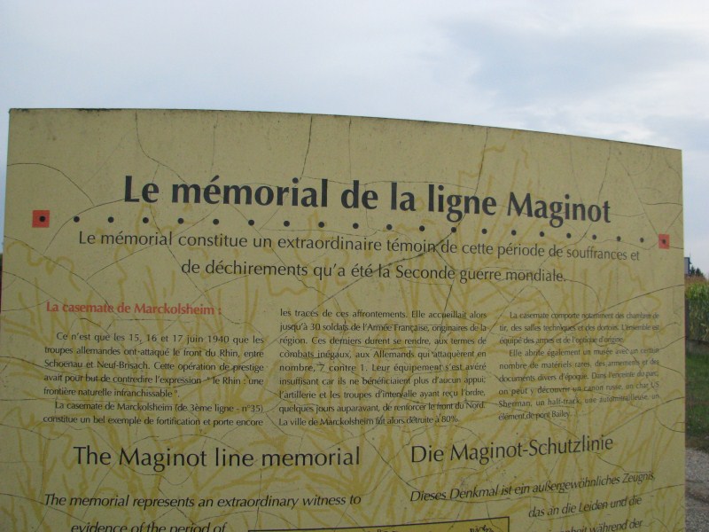 Dopo essere passati da Saint Die arriviamo a Selestat e lì prima di entrare in Germania ci fermiamo a visitare una casamatta della linea Maginot, linea di fortificazioni costruita tra il 1928 ed il 1940 per proteggere i confini francesi da quelli tedeschi (memori di quanto successo durante la prima guerra mondiale), ma che servì ben a poco in quanto i tedeschi nel giugno del 1940 invasero la Francia passando dal neutrale Belgio (misero delle truppe civetta davanti alla Linea Maginot ma il grosse delle truppe entrò in Francia dalle Ardenne).