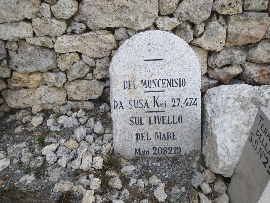 Il valico del Moncenisio è a quota 2083 metri (la strada arriva a quota 2100 metri in alcuni tratti) interamente in territorio francese, il nome Cenisio pare che derivi dalla parola cenere, cenere che i accumulò sul posto a seguito di un incendio (non si sa l’epoca, ma anche durante la costruzione della diga furono trovati accumuli di cenere). Il valico segna il confine tra le alpi Graie e le Cozie.