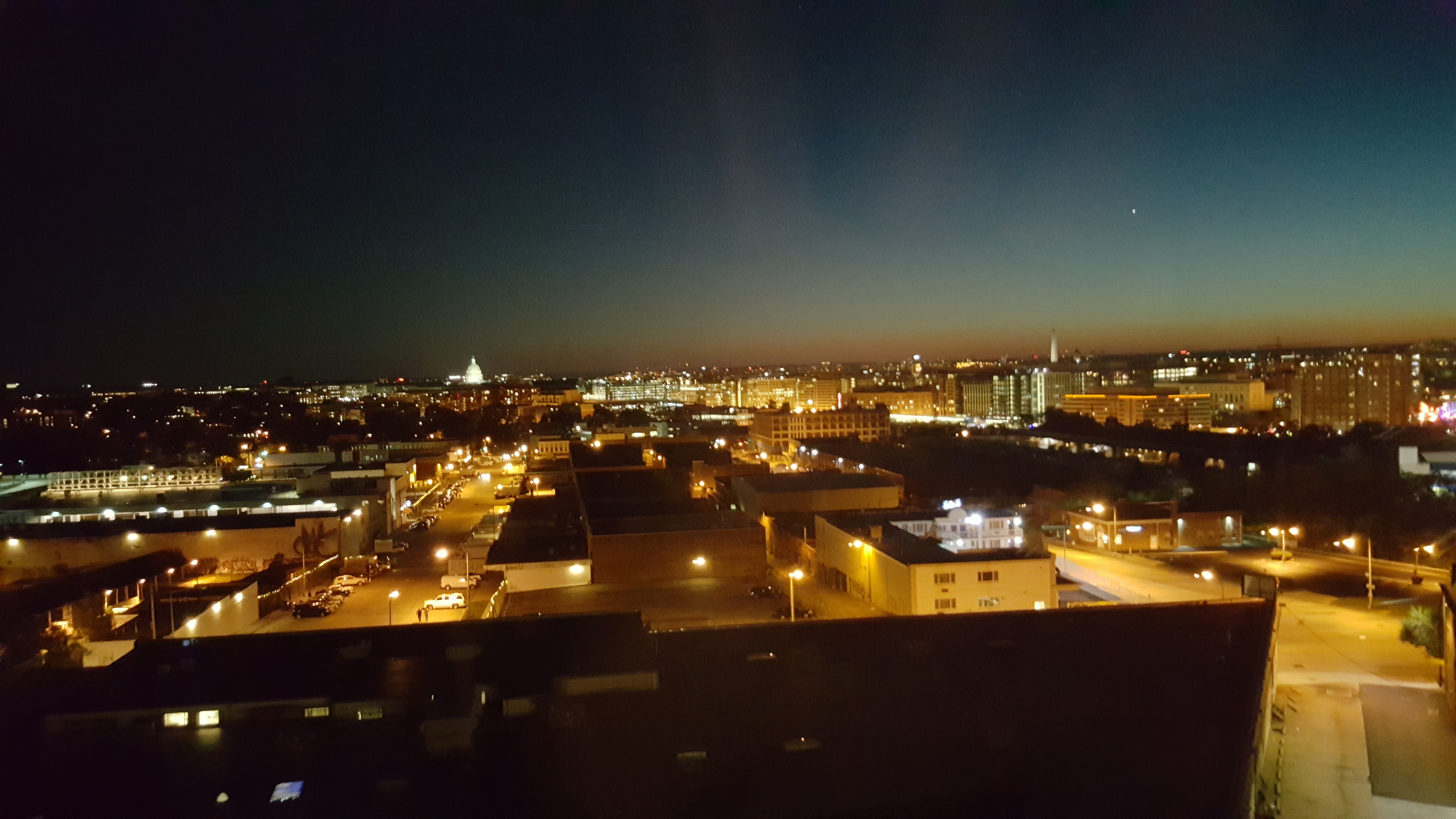 Arriviamo alle 18.30 alla Union Station, stazione di Bus e Treni bellissima, ma subito fuori incontriamo subito una decina di homeless e una pantegana grossa come un bassotto, chiamiamo un Uber e con lo smartphone sbaglio indirizzo, ci sono due hotel con lo stesso nome sulla stessa strada, uno a NE e uno a NW, nessun problema, l'autista si gira e ci porta a quello giusto, l'Homewood Suites by Hilton, una suite spettacolare con vista su Capitol Hill e l'obelisco.