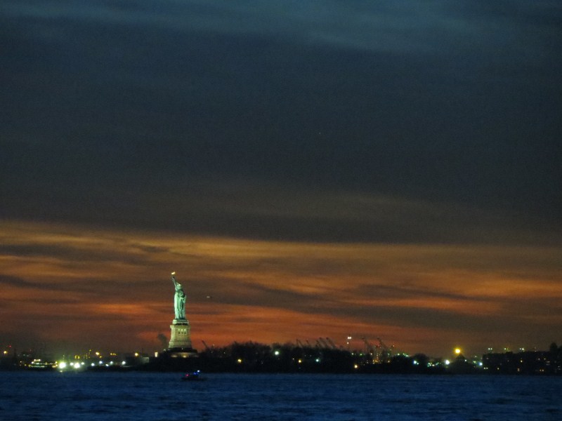Usciti dal museo, ripassiamo al Rockfeller Center passando dal Radio City Hall e vicino agli studi della NBC, poi prendiamo la metro e raggiungiamo Brooklin e da lì l’omonimo ponte da dove assistiamo ad un tramonto favoloso sulla baia verso Liberty Island, facciamo poi una passeggiata nel parco dove partono i Ferry e fotografiamo la Slylines di Manhattan, spettacolare, alle 17.00 arriva la polizia che fa uscire tutti in quanto il parco viene chiuso, fossimo arrivati mezz’ora dopo avremmo perso il tramonto e la skyline.