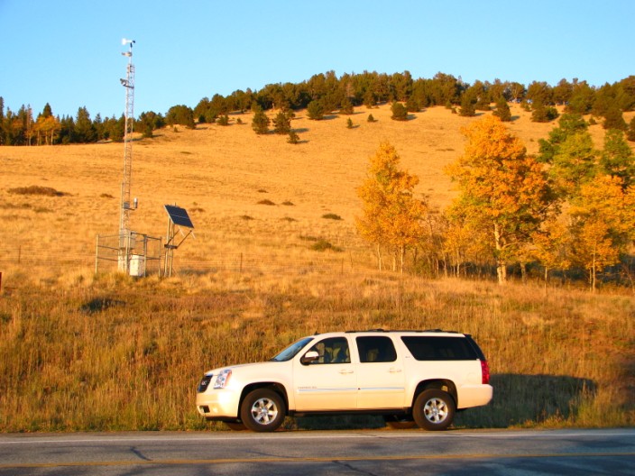 Partiamo poi verso sud passando da Pueblo, scendiamo dai 1800 metri di Manitou fino a quota 1400 metri dove la temperatura raggiunge i +27°C,  poi la strada pian piano sale fino a 2000 metri, infine svoltiamo poi a destra e saliamo fino al La Veta Pass a quota 2870 metri dove la temperatura è a +8°C, li godiamo di un bel tramonto sulle montagne e sugli alberi in particolare betulle di un colore bellissimo.