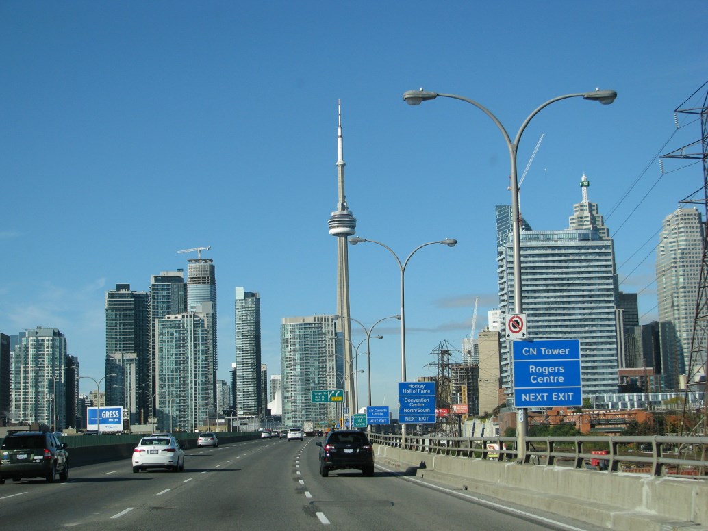 Dopo essere ridiscesi facciamo un giro in downtown sotto i grattacieli e guardiamo un po' di vecchie locomotive nel museo sempre sotto la CN Tower, dopodiché ripartiamo alla volta delle Niagara Falls. La prima ora di viaggio percorriamo poco più di 15 km, un traffico infernale a causa anche di uno svincolo chiuso, ma anche dopo aver lasciato Toronto il traffico è davvero intenso, in realtà l'area urbana è estesissima oltre 640 km quadrati.