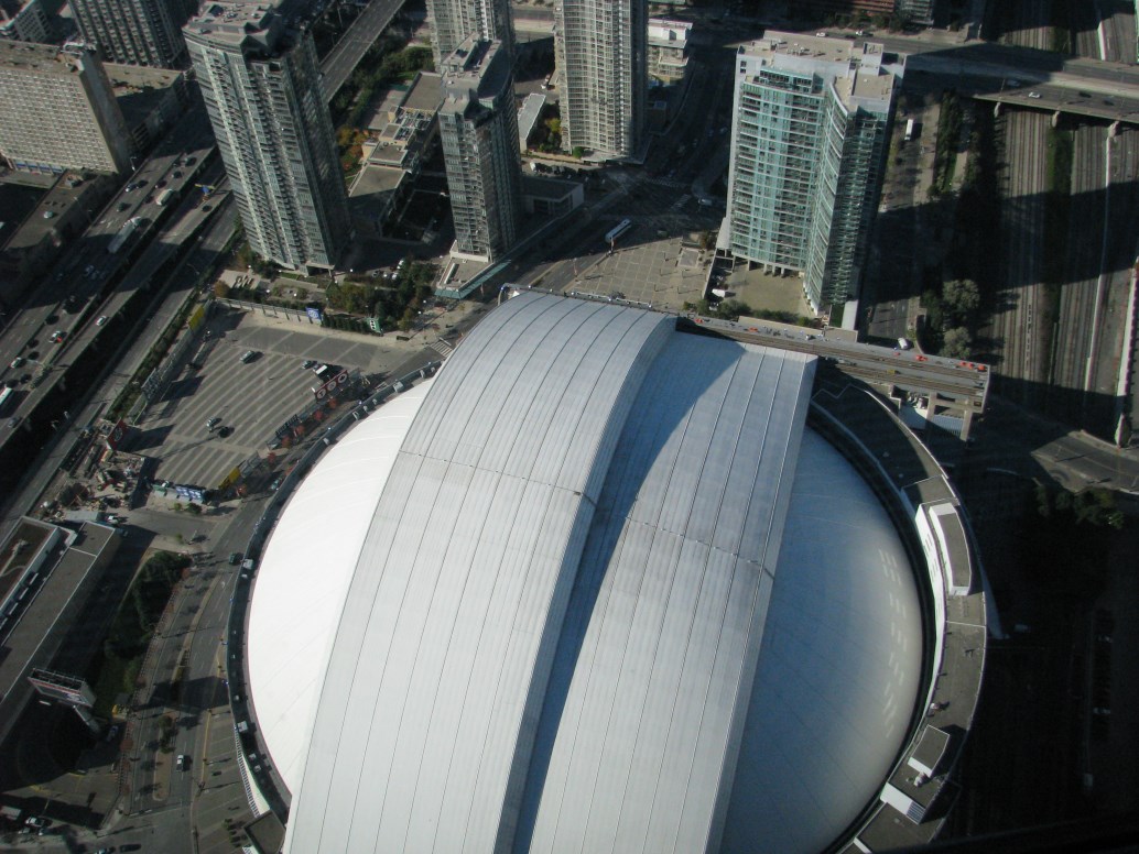 Sotto la CN Tower c'è anche lo stadio di Toronto, il Rogers Center, famoso per essere lo stadio con tetto apribile più grande al mondo. Quando è chiuso (come oggi) sembra una gigantesca nocciolina.