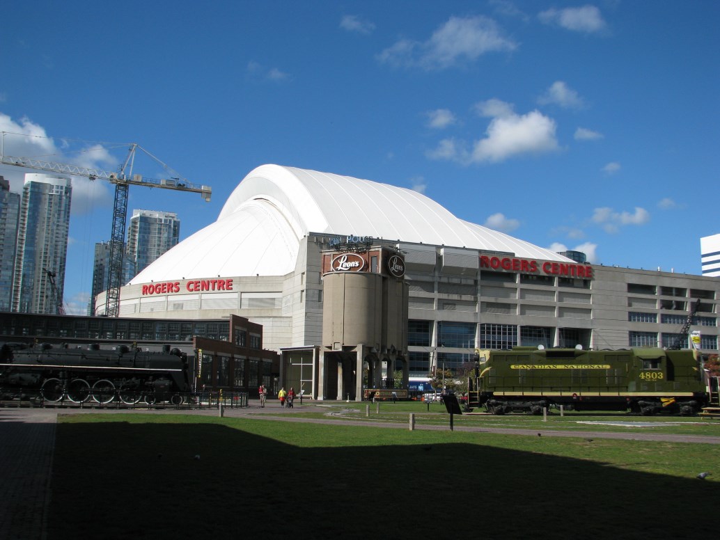 Sotto la CN Tower c'è anche lo stadio di Toronto, il Rogers Center, famoso per essere lo stadio con tetto apribile più grande al mondo. Quando è chiuso (come oggi) sembra una gigantesca nocciolina.