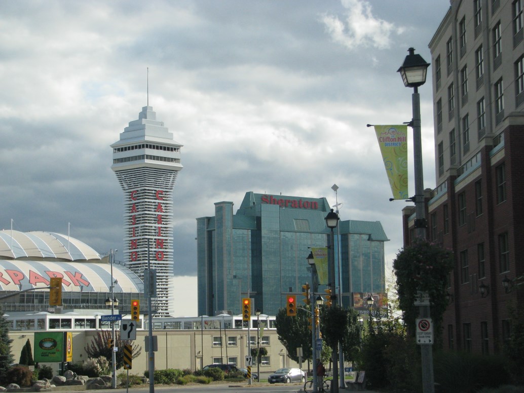 Dopo essere ridiscesi facciamo un giro in downtown sotto i grattacieli e guardiamo un po' di vecchie locomotive nel museo sempre sotto la CN Tower, dopodiché ripartiamo alla volta delle Niagara Falls. La prima ora di viaggio percorriamo poco più di 15 km, un traffico infernale a causa anche di uno svincolo chiuso, ma anche dopo aver lasciato Toronto il traffico è davvero intenso, in realtà l'area urbana è estesissima oltre 640 km quadrati.