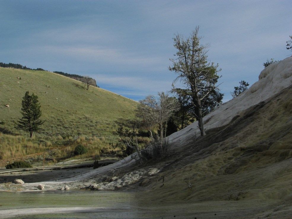 Oggi a differenza di ieri ci eravamo muniti di pranzo al sacco (nel Parco c'è un solo ristorante aperto in questo periodo) ed abbiamo mangiato in auto vicino al Old Faithful prima di andare a Mammoth Springs (spettacolare, è quella con le "cascate" di calcio, magnesio e silicati alte fino a 90 metri).