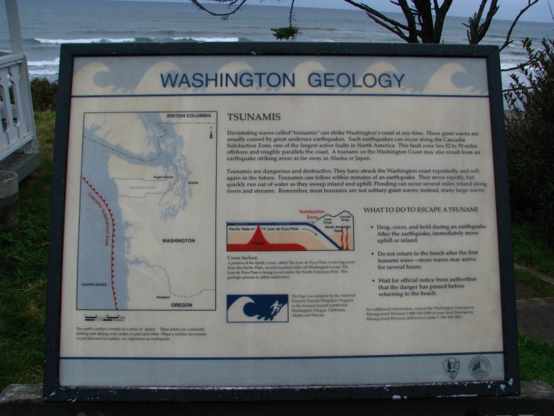 Nella zona numerosi cartelli segnalano il rischio di Tsunami e spiegano quali siano le vie di fuga in questa evenienza.