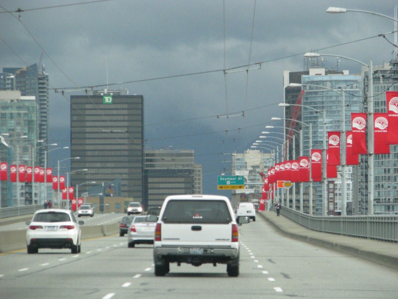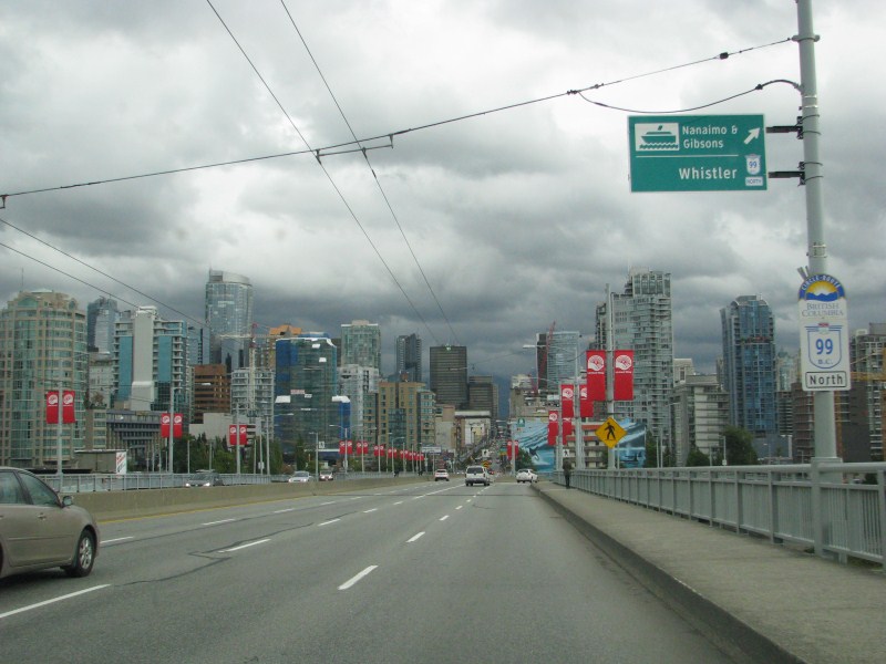 Presa l’auto e dopo aver ostiato un po’ contro i canadesi, attraversiamo il Lions Gate Bridge, una sorta di Golden Gate di Vancouver che attraversa la baia e raggiungiamo Vancouver Nord dove troviamo una camera al Comfort Inn. Notare che le corsie di uscita (e di accesso) alla città, (tre corsie) a seconda del traffico hanno diversi sensi di marcia a seconda di indicatori luminosi, per capirci la sera due corsie escono ed una entra, la mattina è il contrario, non male, purché le luci funzionino.
