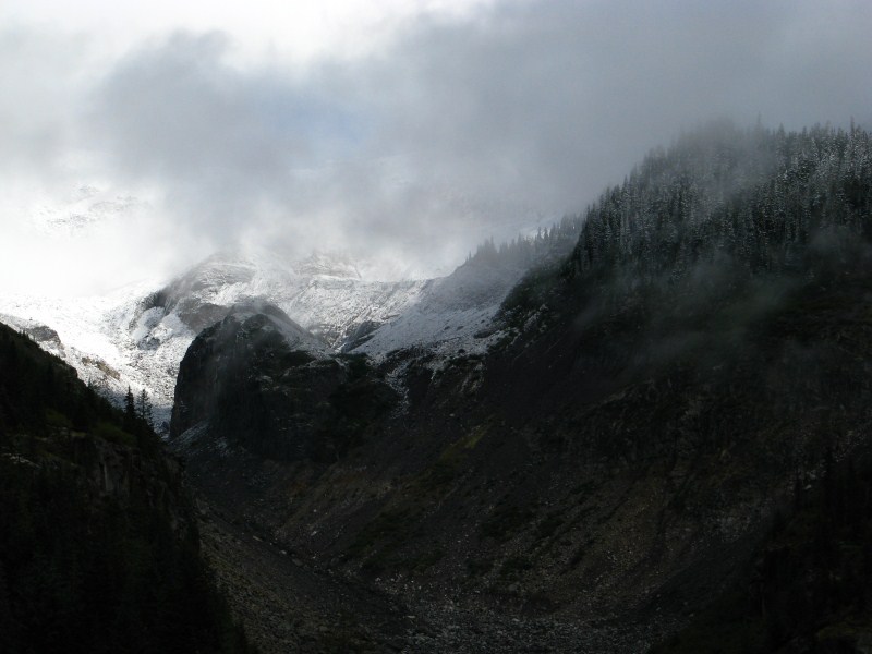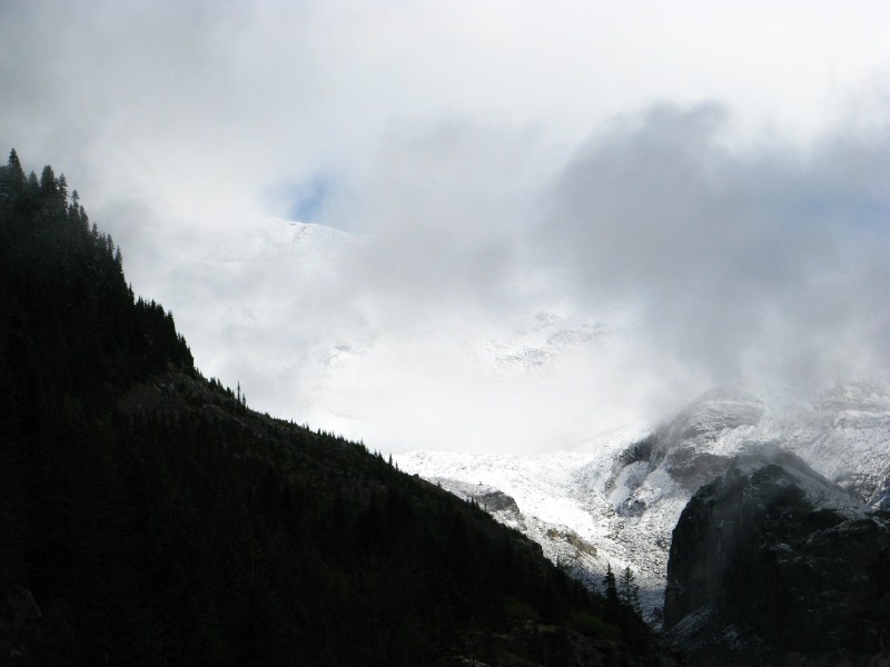 dopo la sveglia lasciamo il Motel Motor Inn nel quale non ho potuto fare a meno di fotografare il decoder della TV via cavo blindato come una cassaforte, facciamo colazione a Puyallup in un Donut gestito da asiatici, molto gentili e ci chiedono se siamo francesi, la gente quando ci vede in questi posti dispersi si chiede sempre cosa diavolo facciamo lì. Partiamo alla volta del Mount Rainier National Park, sulla cartina sembrano pochi km ma ce ne vorranno 120 per raggiungere il visitor center. Man mano che saliamo nel parco la temperatura cala, da 10°C arriviamo a 0°C, all’entrata del parco posso utilizzare il mio pass annuale acquistato un anno fa, c’è una Ranger  bionda sui 30 anni, niente male all’entrata che ci informa che alcune strade sono chiuse (io avevo già verificato via internet la mattina). Raggiungiamo Paradise che è il posto più nevoso degli USA ed uno dei più nevosi al mondo, si trova a quota 1647 metri ed ha una nevosità media di 17,17 metri l’anno, il record è di 28 metri di neve in un anno, lo scorso inverno sono caduti 23,6 metri di neve.