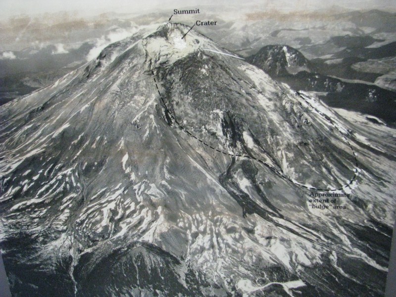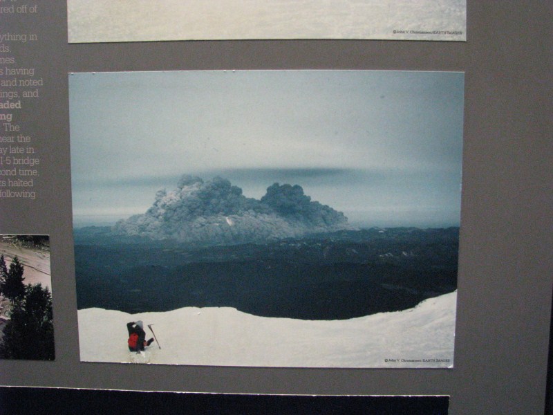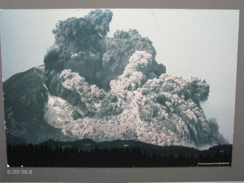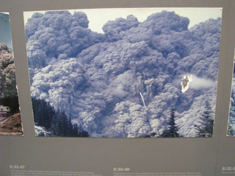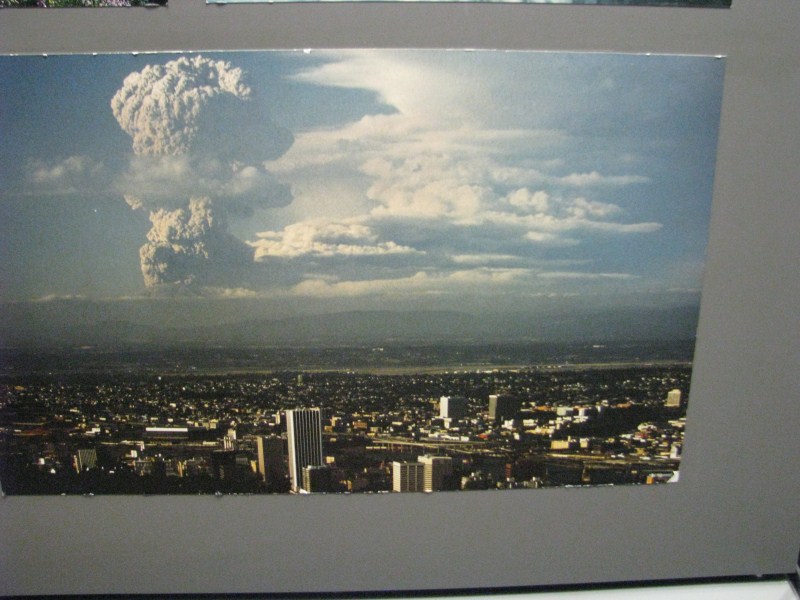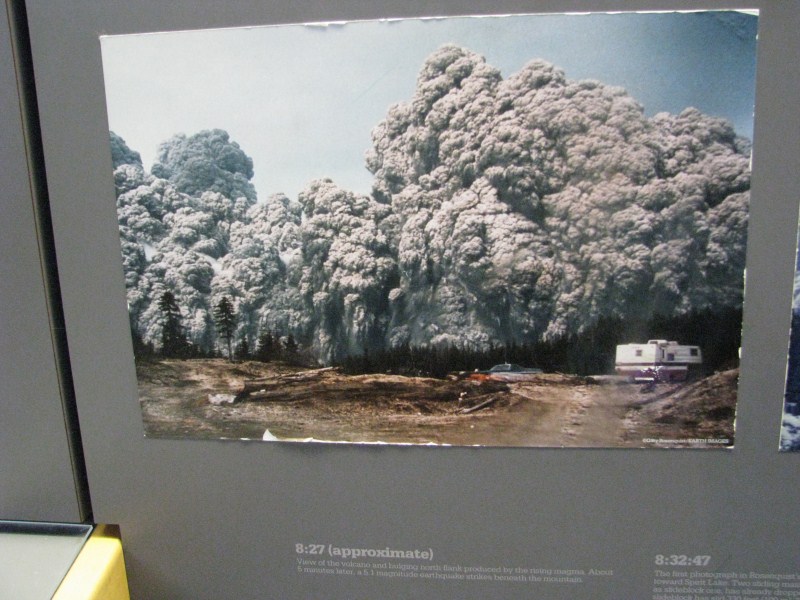 Iniziamo la giornata con una colazione a base di caffé e donuts al Motel Mt St. Helens, fuori piove moderato, partiamo alla volta del parco del Monte St Helens e ci fermiamo al Visitor Center (il primo che troviamo a pagamento), qui possiamo vedere un filmato che spiega quello che è successo qui 31 anni fa, quando nel marzo del 1980 il monte (vulcano inattivo), all’epoca alto 2950 metri iniziò a dar segni di risveglio, venne evacuata tutta l’area intorno al vulcano per diverse decine di km, il vulcano continuò a sussultare (10.000 scosse di terremoto se ho ben capito) fin quando due mesi dopo nel mese di maggio esplose, in pochi minuti la colonna di cenere raggiunse i 16 km di altezza, venne devastata un’area enorme e morirono solamente 57 persone. Il monte era ricoperto di ghiacciai che si sciolsero praticamente istantaneamente ed il fango travolse il lago sottostante con la lava, il lago sparì e se ne formarono altri due di nuovi. Ora il monte è alto solamente 2549 metri (400 metri se ne sono andati)  La ranger mi ha detto (su mia domanda) che si sono comunque riformati dei ghiacciai (cosa incredibile vista la quota) all’interno del cratere, bisogna dire che qui nevica moltissimo.