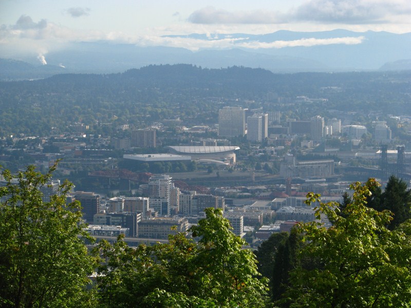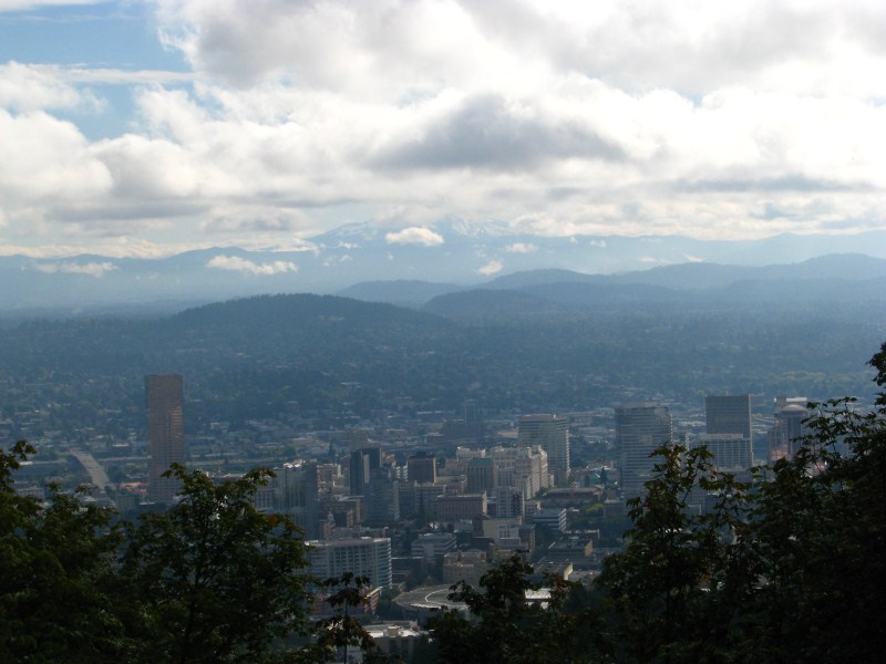 Finalmente una giornata di sole, dopo la colazione al Best Western, chiediamo alla receptionist da dove si può vedere il Mount St Helens da Portland, dobbiamo ripetere tre volte la domanda, poi finalmente capisce la parola Helens perché non avevamo aspirato abbastanza la H, in realtà scopriremo che non aveva capito che volevamo il Monte ST Helens bensì il quartiere di Helens, ad ogni modo grazie a lei arriviamo sulla colina sopra downtown Portland e da lì possiamo ammirare dall’alto Portland ed il Monte Hood, alto 3424 metri che si trova ad almeno 50 km in linea d’aria da Portland, il panorama lo abbiamo ammirato all’interno della villa/museo di Pitoc Mansion uno dei fondatori di un quotidiano di Portland, morto nel 1919 se ben ricordo.