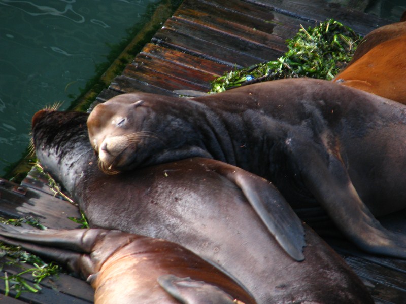 Da lì sentiamo poi il tipico verso dei leoni di mare, scendiamo di qualche centinaio di metri ed arriviamo ad una sorta di Pier 39 di San Francisco, un molo con un sacco di leoni di mare che riposano beatamente su delle assi di legno e litigano (solo a versi) se qualcun altro vuole salire sulle assi, c’è anche una sorta di gabbia, che serve ad imprigionare i leoni di mare nel caso in cui i ranger vedano che sono magari feriti o soprattutto per togliere eventuali rifiuti che possono provocarne la morte (corde ad esempio).