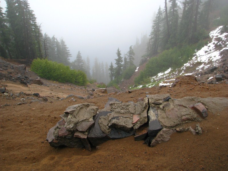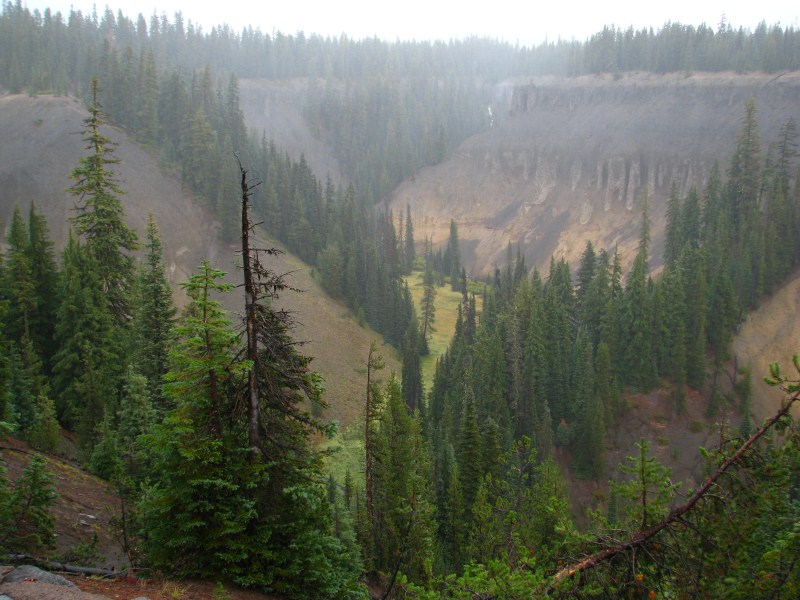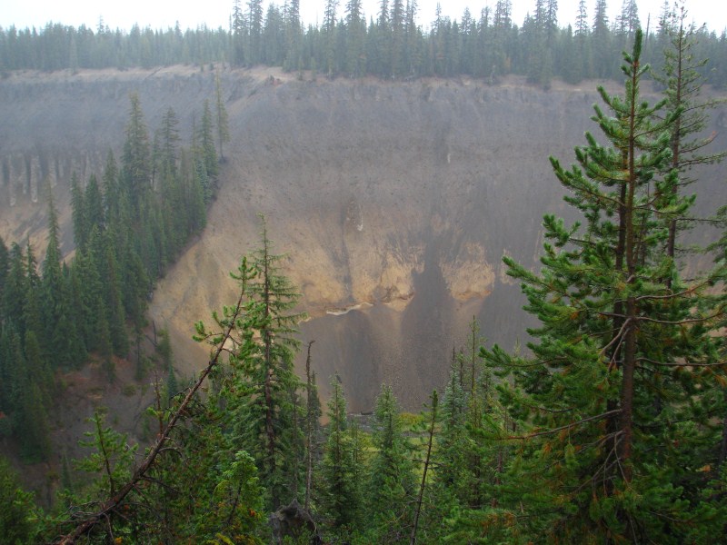 Il lago (ho chiesto al Ranger) non ghiaccia praticamente mai, l’ultima volta fu nel 1949, la zona è molto nevosa, sono caduti l’anno scorso oltre 15 metri di neve. Dopo aver guardato un video sul Crater Lake nel Visitor Center, ripartiamo (piuttosto avviliti) verso Klamath Falls, lungo la discesa dal Crater Lake ci fermiamo a vedere delle fumarole fossili.
