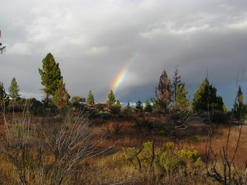 La perturbazione ci concede un break, il cielo si apre e possiamo ammirare un cielo azzurro solcato da nuvole basse e soprattutto da una lenticolare sopra un cono vulcanico, tipo quelle che si formano sul Monte Rainier o sullo Shasta (quest’ultimo un vulcano vicino alle Lava Beds che si eleva fino a quota 4317 metri. Restiamo stupiti dal tramonto, cielo azzurro, nuvole scure, arcobaleno, sole che illumina un vulcano, alberi che assumono colorazioni intense, solo questo tramonto valeva la vacanza, ho scattato foto tra le più belle che abbia mai fatto.
