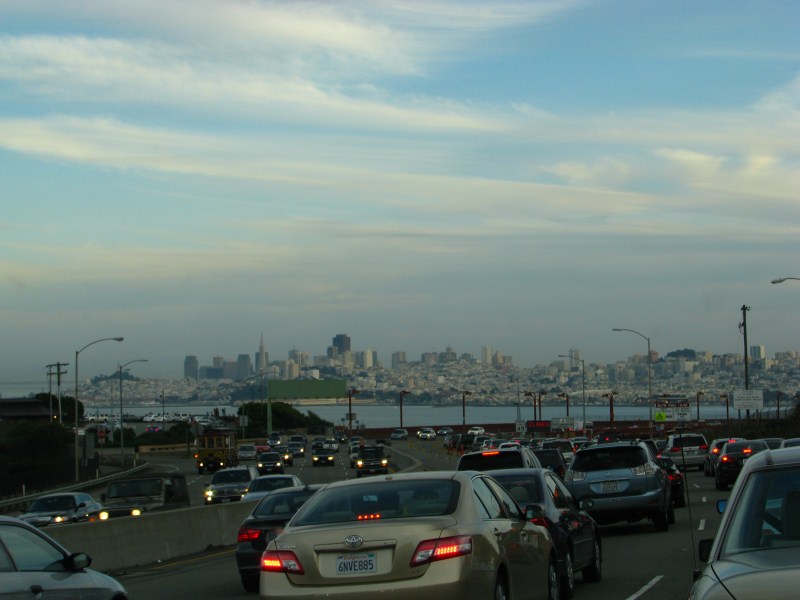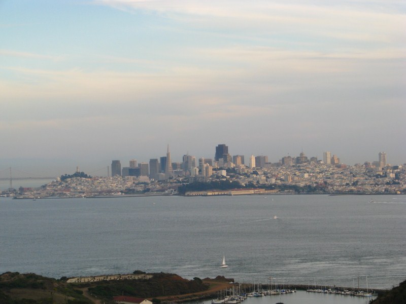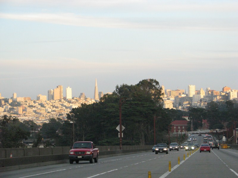 Per arrivare a Point Reyes dobbiamo attraversare l’area urbana di San Francisco, ma prima voglio passare alla sede della Davis Instruments, principale produttore mondiale di stazioni meteo semi-professionali, arrivo lì ed in realtà scopro che è lo stabilimento produttivo con gli uffici e non esiste un negozio, mi presento alla reception e chiedo se c’è un punto vendita, la risposta  no, chiedo allora se posso fare delle foto all’esterno, l’impiegata deve fare due telefonate per avere l’autorizzazione, nonostante abbia detto che rappresento una rete di oltre 100 stazioni meteo Davis in Italia, scattate le foto partiamo alla volta dell’area urbana di San Francisco, rimaniamo incolonnati non poco a causa di un camion che ha perso un carico di bambole di pezza, l’area urbana di San Francisco è enorme, passato il Bay Bridge arriviamo nella zona a nord della città (evitando di attraversarla), ci fermiamo a pranzo a Mill Valley, una graziosa cittadina abitata da gente straricca a giudicare da look delle persone, case ed automobili, la cosa che ci stupisce è che le persone che troviamo nel bar sono tutte magre, in perfetta forma ed anche quelle per strada.