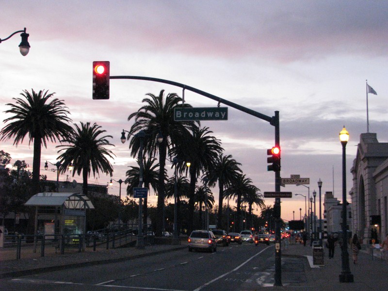 Per arrivare a Point Reyes dobbiamo attraversare l’area urbana di San Francisco, ma prima voglio passare alla sede della Davis Instruments, principale produttore mondiale di stazioni meteo semi-professionali, arrivo lì ed in realtà scopro che è lo stabilimento produttivo con gli uffici e non esiste un negozio, mi presento alla reception e chiedo se c’è un punto vendita, la risposta  no, chiedo allora se posso fare delle foto all’esterno, l’impiegata deve fare due telefonate per avere l’autorizzazione, nonostante abbia detto che rappresento una rete di oltre 100 stazioni meteo Davis in Italia, scattate le foto partiamo alla volta dell’area urbana di San Francisco, rimaniamo incolonnati non poco a causa di un camion che ha perso un carico di bambole di pezza, l’area urbana di San Francisco è enorme, passato il Bay Bridge arriviamo nella zona a nord della città (evitando di attraversarla), ci fermiamo a pranzo a Mill Valley, una graziosa cittadina abitata da gente straricca a giudicare da look delle persone, case ed automobili, la cosa che ci stupisce è che le persone che troviamo nel bar sono tutte magre, in perfetta forma ed anche quelle per strada.