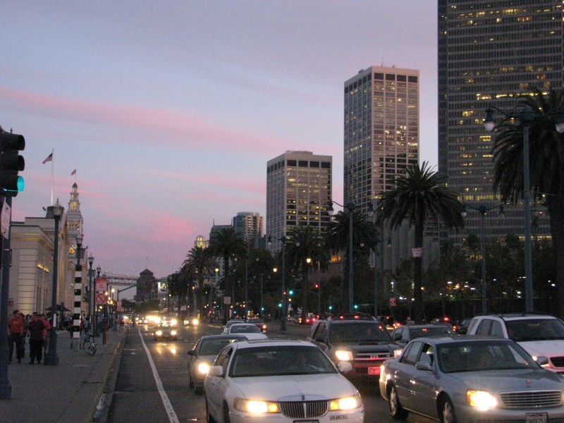 Terminiamo la cena verso le 22.30, ci avviamo verso l’auto dove arriviamo alle 23.00, facciamo un giro di circa un’ora per le strade in salita e discesa da film (in tutti i sensi ) di San Francisco, passiamo anche a vedere la mitica Lombard Street la strada più corta e con più curve al mondo (così dicono se ben ricordo) poi decidiamo di non prendere una camera in hotel, parcheggiamo l’auto davanti al concessionario della Jaguar di San Francisco e facciamo un pisolino da mezzanotte e mezza alle 2, alle due iniziano a lavare le strade e tutti spostano l’auto con una puntualità svizzera. In quell’ora è mezza è incredibile la gente che è passata in auto, autobus, piedi e bici, la città è vivissima, troppo per i miei gusti.  Ci sono numerosi homeless che dormono per strada o chiedono l’elemosina, mi fanno una tristezza tremenda.