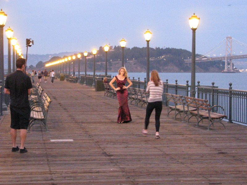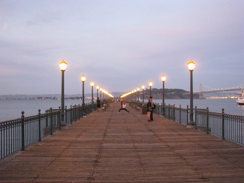 Scattate alcune foto alla baia, partiamo alla volta di San Francisco dove arriviamo al tramonto attraversando il mitico ponte Golden Gate, la nostra visita a San Francisco sarà molto breve, avendo già visitato la città nel 2007, ci limitiamo a passeggiare lungo i Pier ed a scattare foto lungo il molo (dove troviamo anche una fotomodella che fa un servizio fotografico). Scendiamo fino al Pier39 dove ci sono i leoni di mare, dopo aver visto i leoni e fatto un giro per i vari negozi (ricordo quello che vende le cioccolate Ghirardelli, uno dei più caratteristici) andiamo a cena da Bubba Gump, dove ci concediamo l’ultima cena a base di granchio, lobster (non ho mai capito se è aragosta o astice) gamberetti, vongole, cozze. Il locale che si ispira al film Forrest Gump è molto simpatico, ci sono una miriade di camerieri velocissimi, sul tavolo c’è un cartello “Stop Forrest” quando vuoi fermare il cameriere “Run Forrest” quando è tutto ok, nel locale oltre a trasmettere continuamente  in TV il film sono presenti alcuni degli indumenti utilizzati nel film stesso (la maglia da Football di Forrest, il vestito da bambina e da adulta della sua ragazza ecc…)